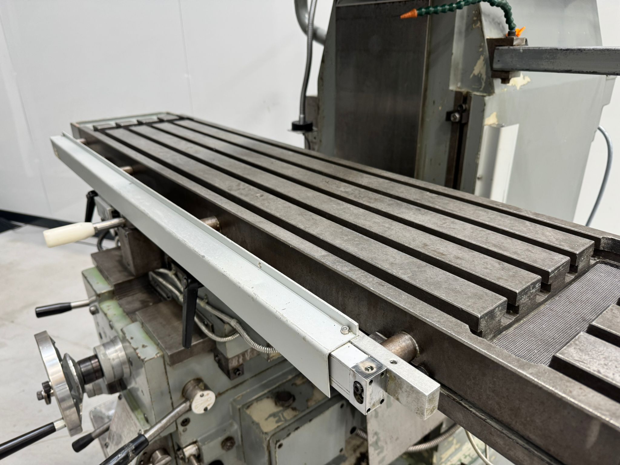 Table size 1300mm x 300mm. Spindle speeds 40-1750rpm. Feed speeds 7/16” – 20”. Spindle taper 40 int. Coolant pump. Safety Guarding. Selection of Tooling.