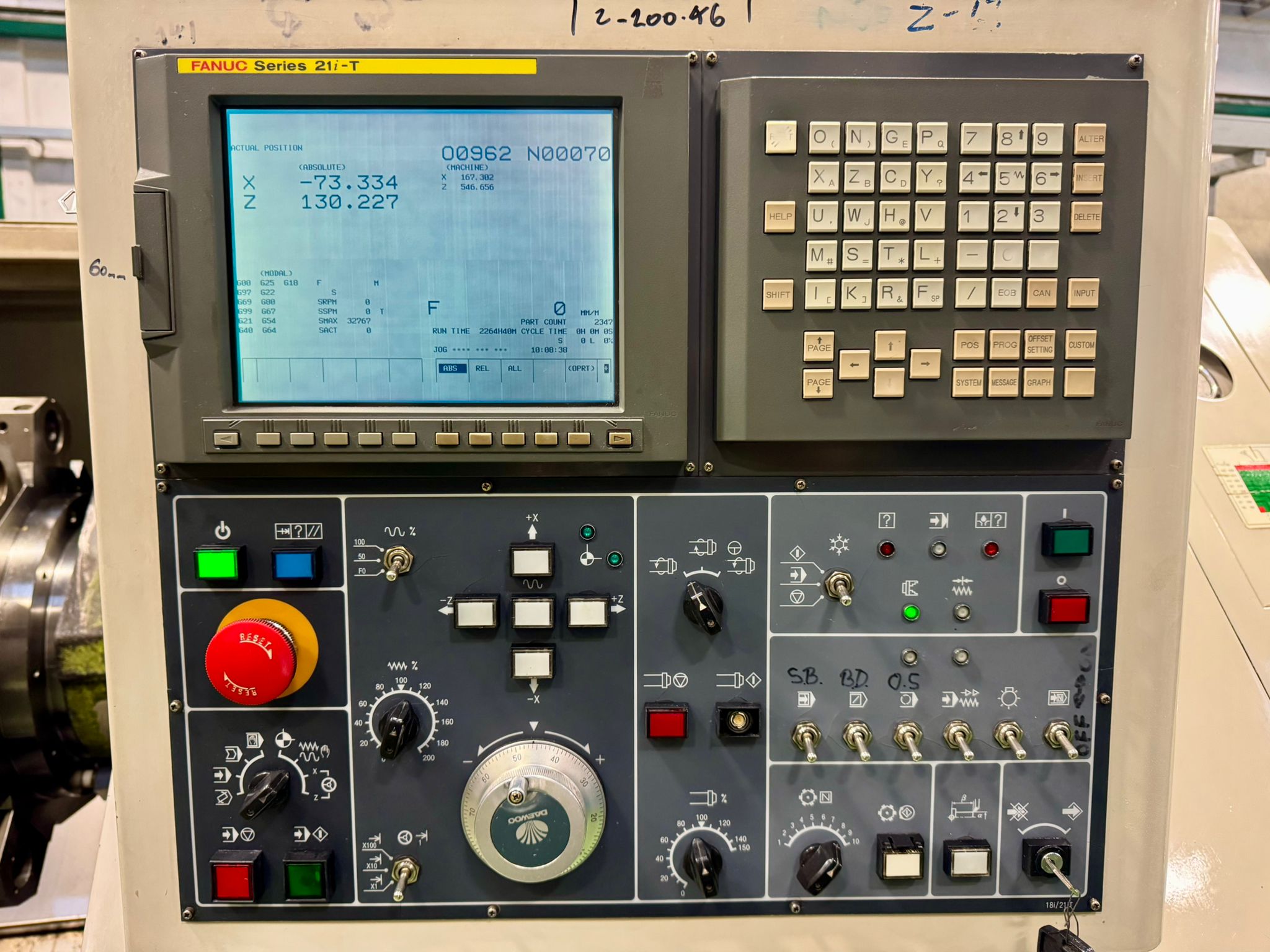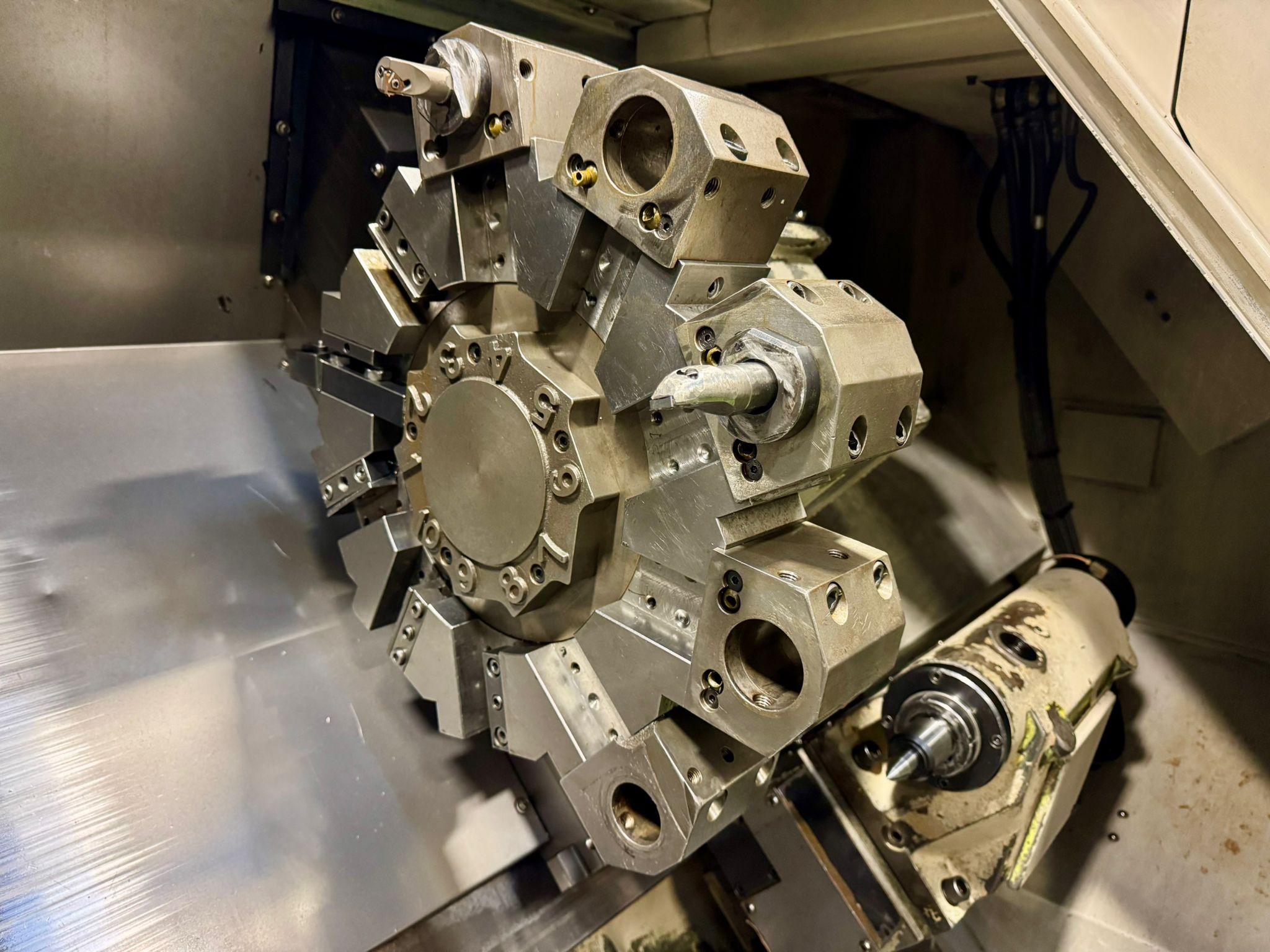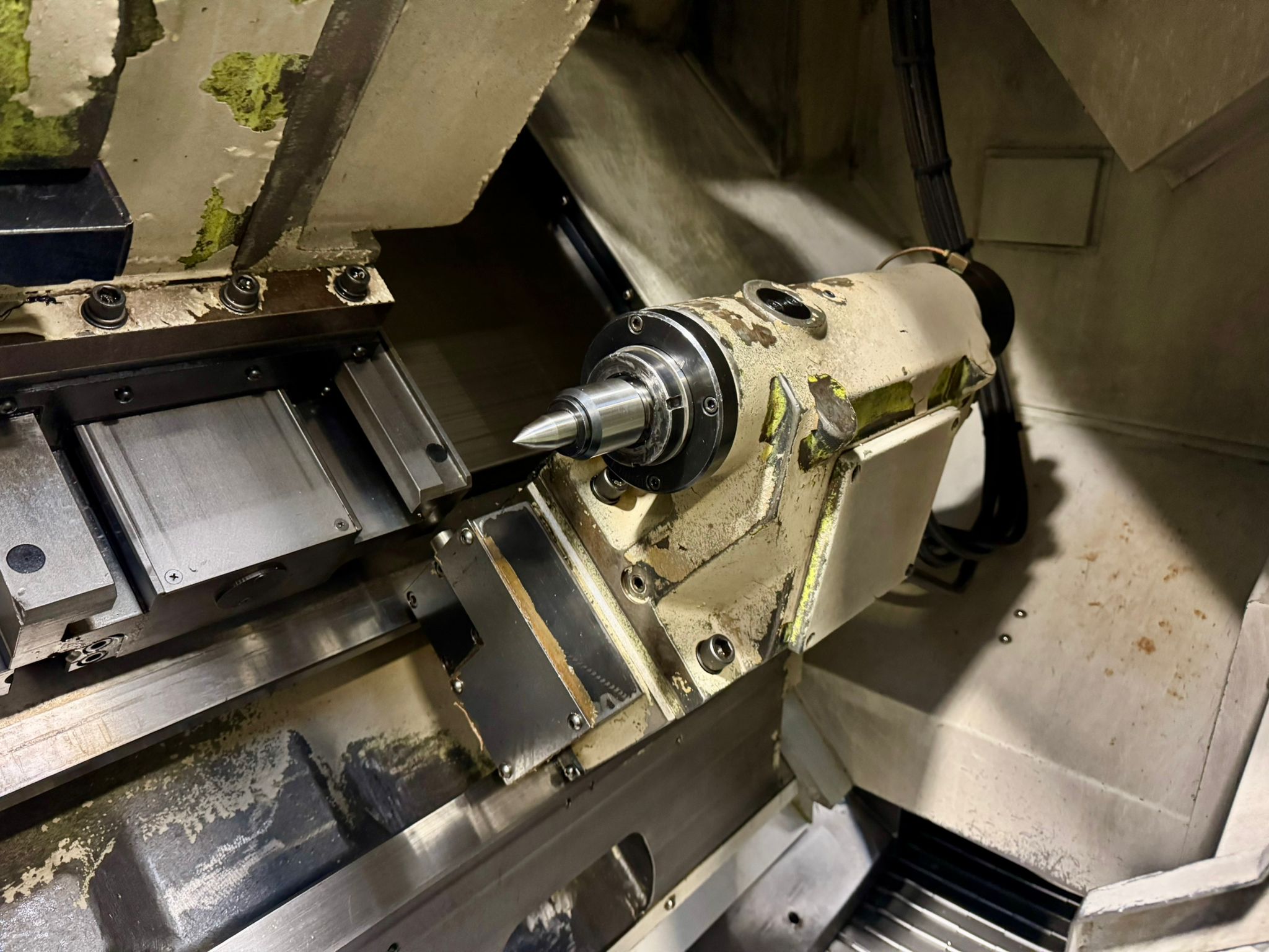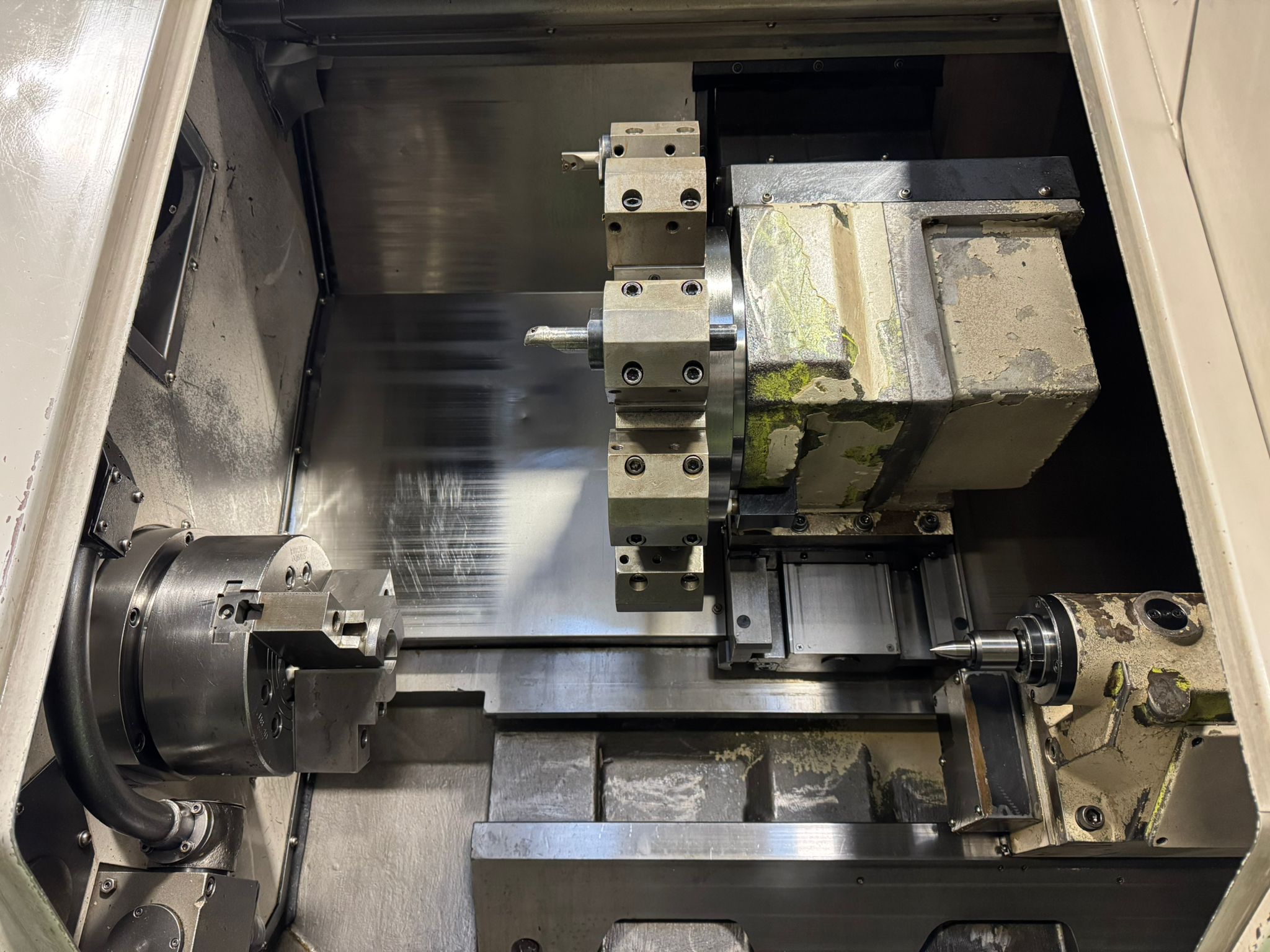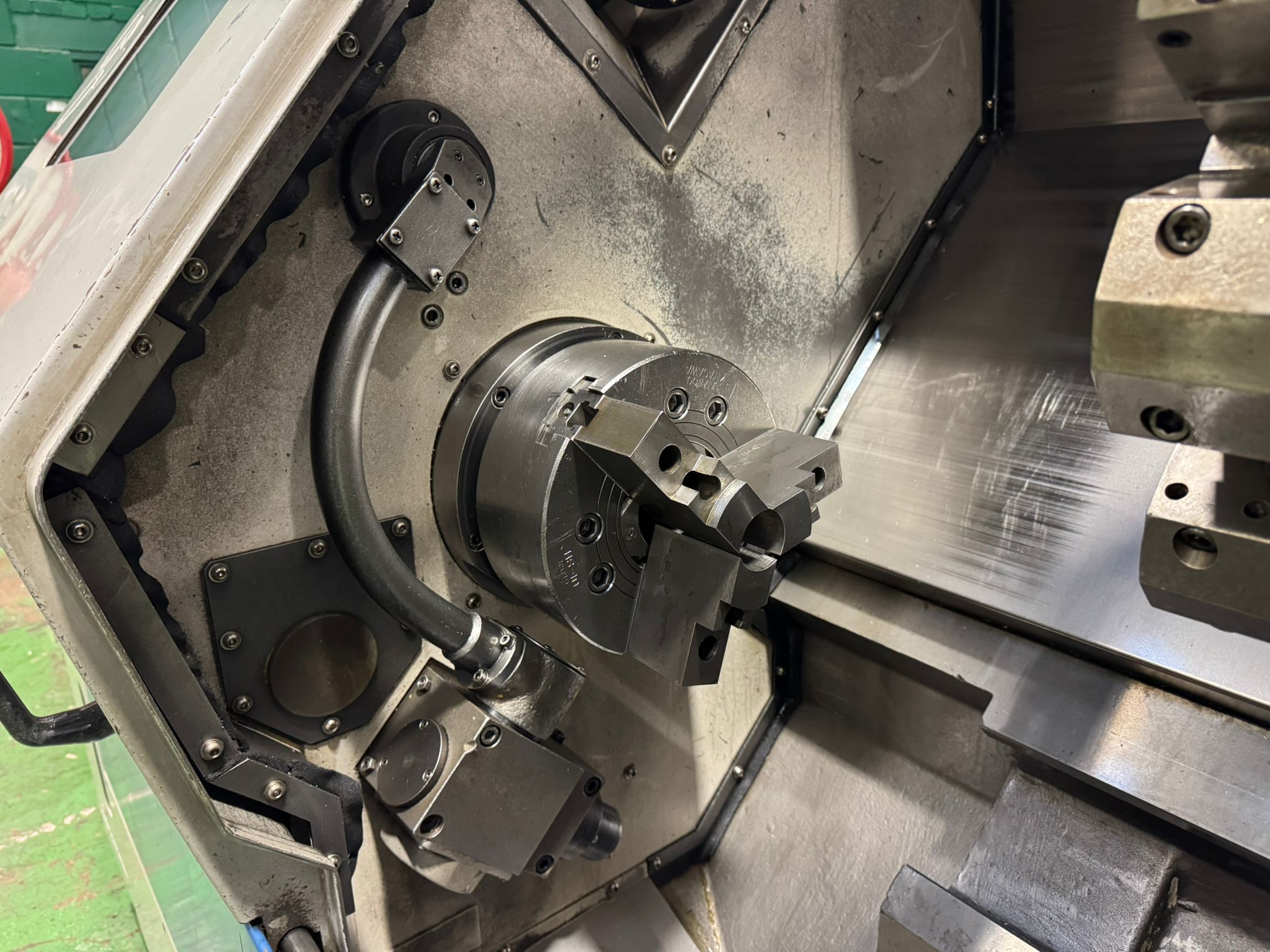 Swing over bed 570mm. Turning dia. 420mm. Maximum turning length 650mm. Spindle speeds 3500 rpm. Machine complete 3 jaw powered chuck. 10 station turret. Tailstock. Swarf conveyor. Swarf Bin. Toolsetter. Fanuc 21i-T Control.