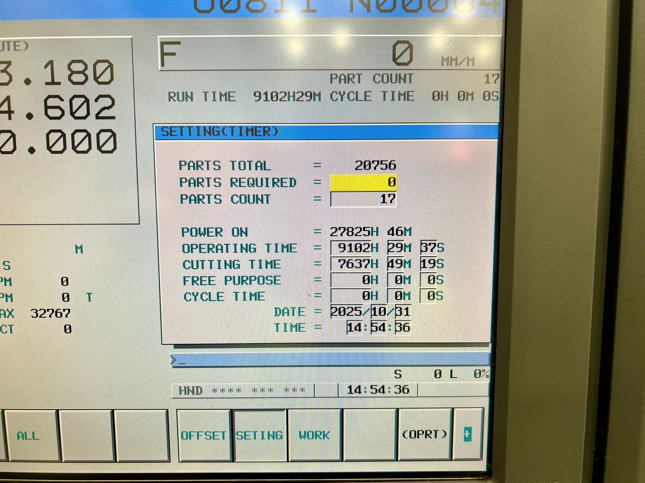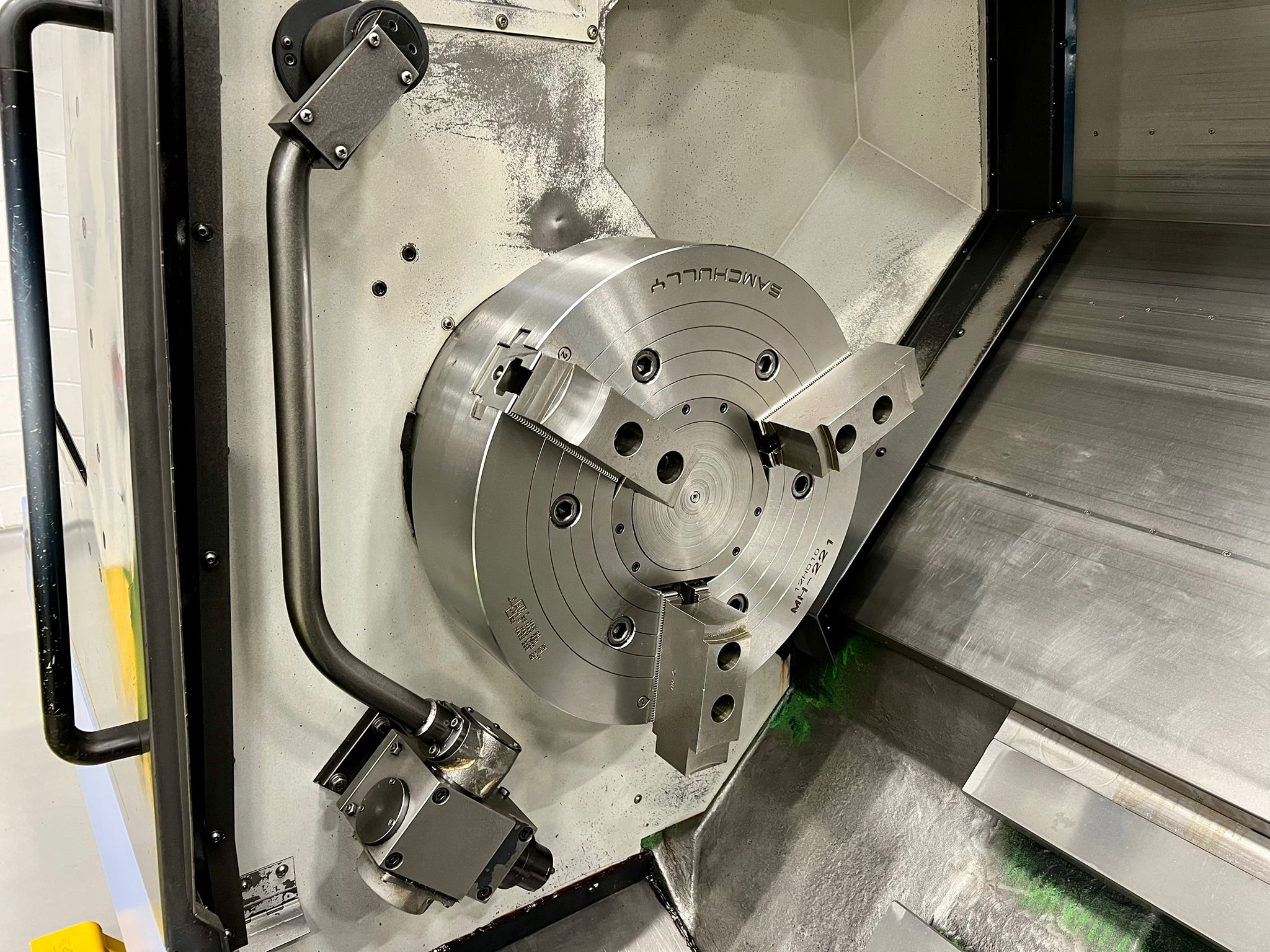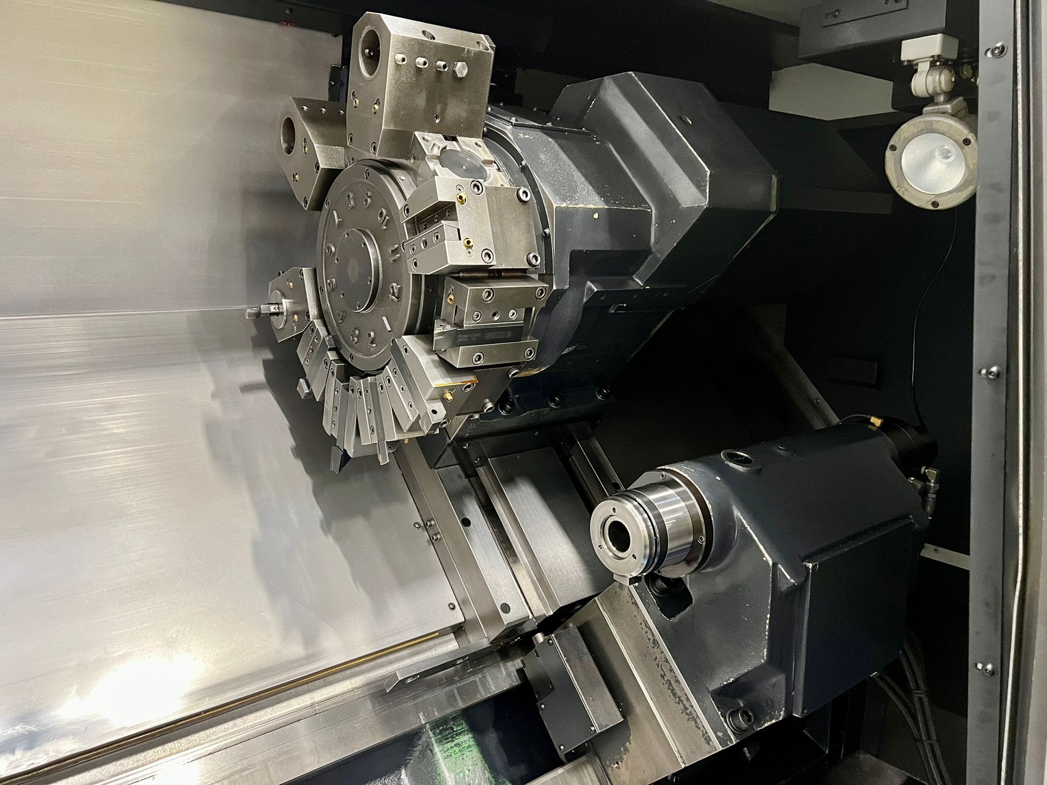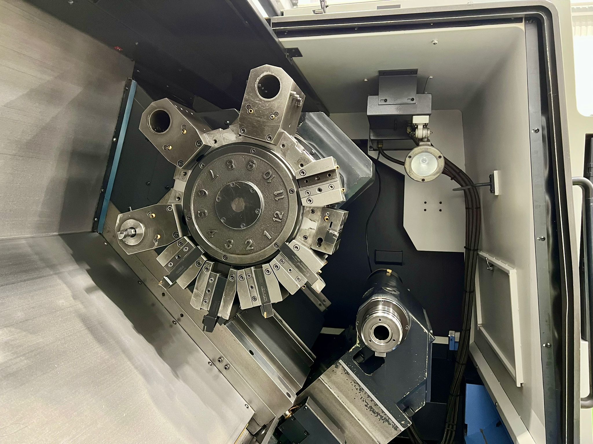 Swing over bed 900mm. Swing over cross slide 720mm. Turning dia. 650mm. Turning Length 2000mm. Bar capacity 165mm. Spindle speeds 1500 rpm. Spindle motor 45kW. 12 station turret. Complete with 533mm dia. Samchully 3 jaw powered chuck. Swarf conveyor. Swarf bin. Driven tooling speeds 3000 rpm. Driven tooling power 11kW. Fanuc 21i-TB Control. Cutting hours 7638 hours. Machine dimensions L x W x H 5732mm x 2217mm x 2270 mm. Approximate weight 9800 kg.