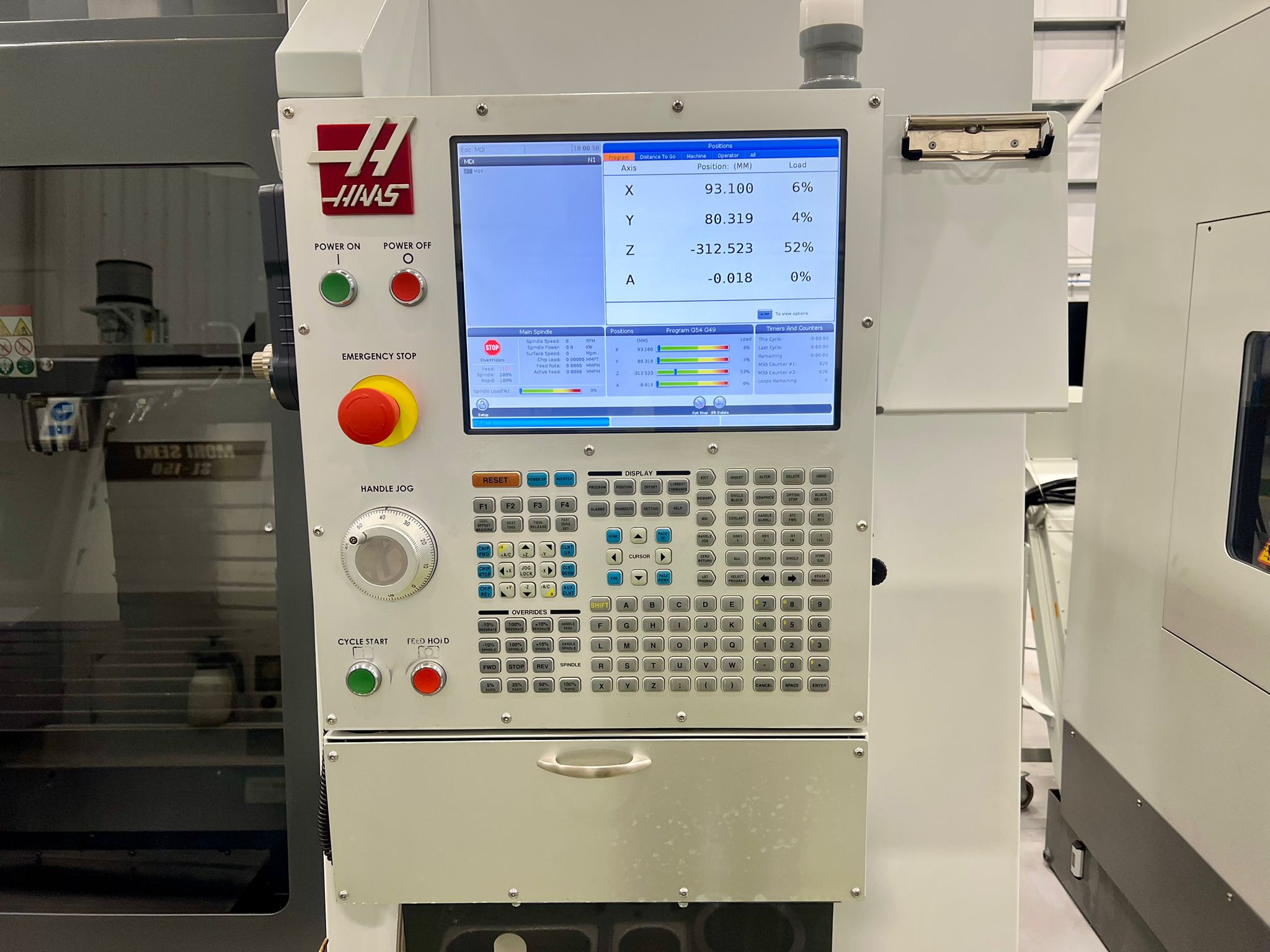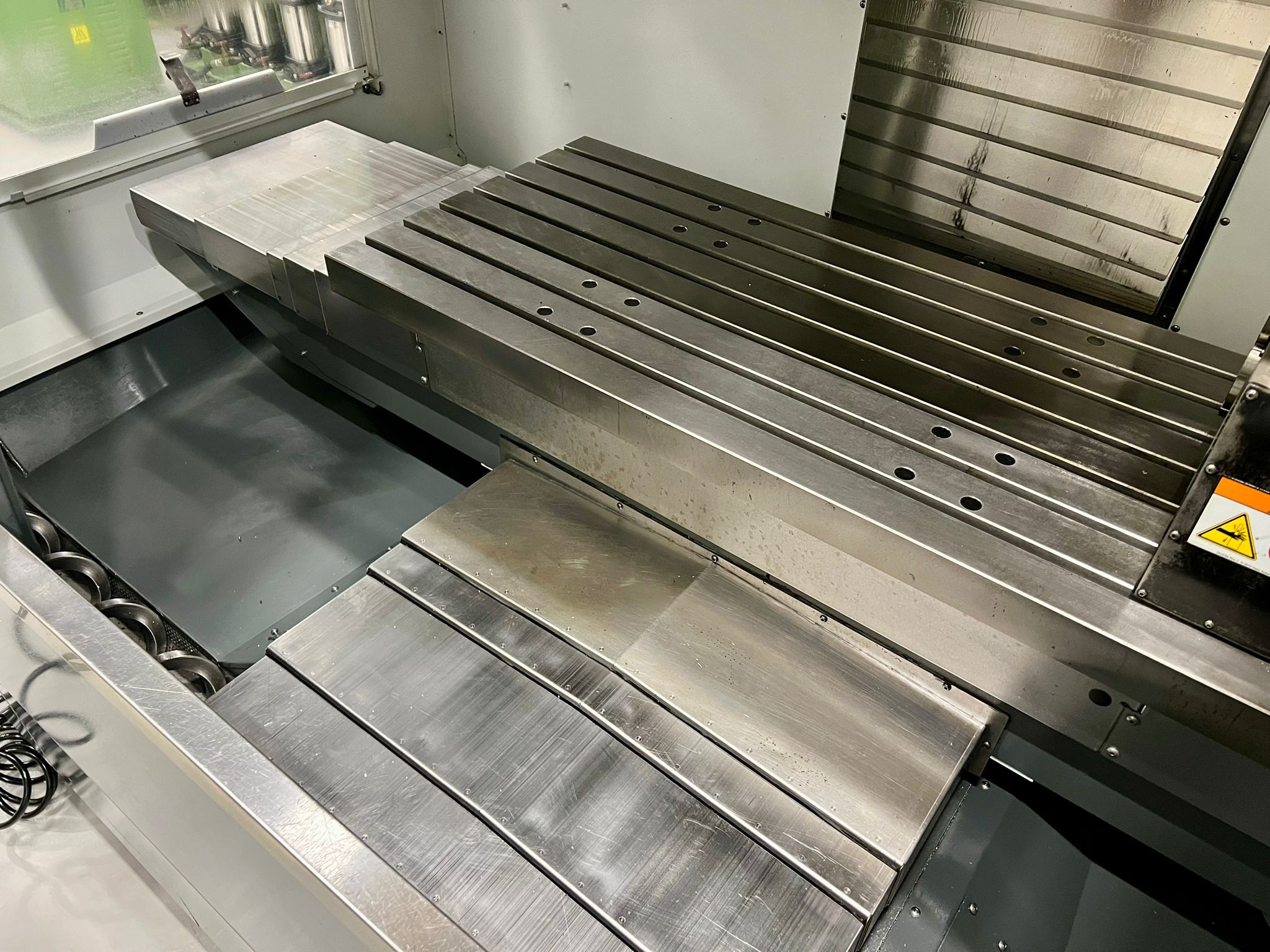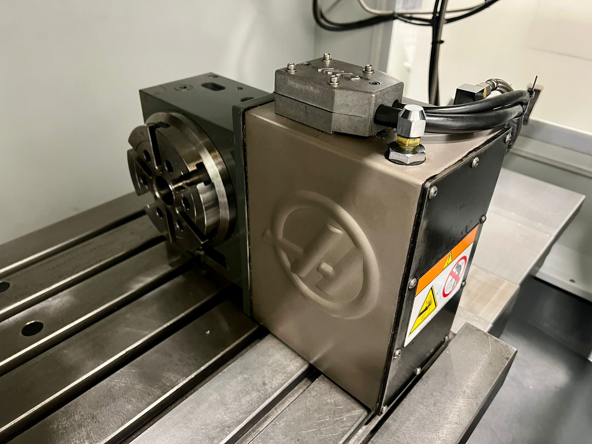 Table size 1372mm x 635mm. X/Y/Z travels 1016mm/660mm/635mm. Spindle nose to table (min/max) 114mm/749mm. Maximum weight on table (evenly distributed) 1500 kg. Spindle power 22.4 kW (Direct drive). Spindle speeds 8100 rpm. Spindle taper BT40. Feedrates X/Y/Z 18m/min. 20 Station ATC. Toolchange speed 4.2 seconds. Maximum tool dia. (full) 89mm. Coolant capacity 200 litres. Machine complete with Haas 4th Axis Attachment. Selection of spindle tooling. Year 2019