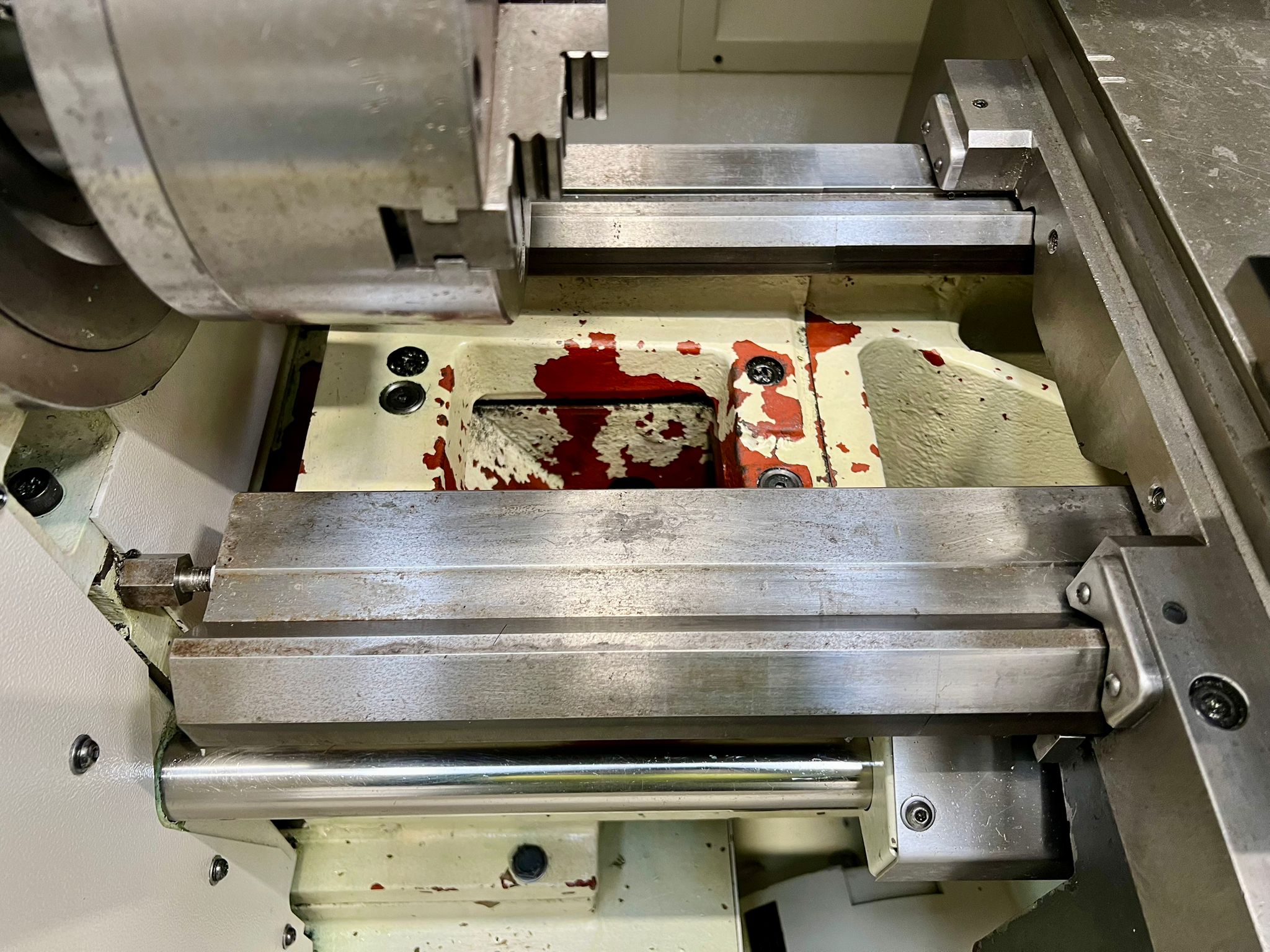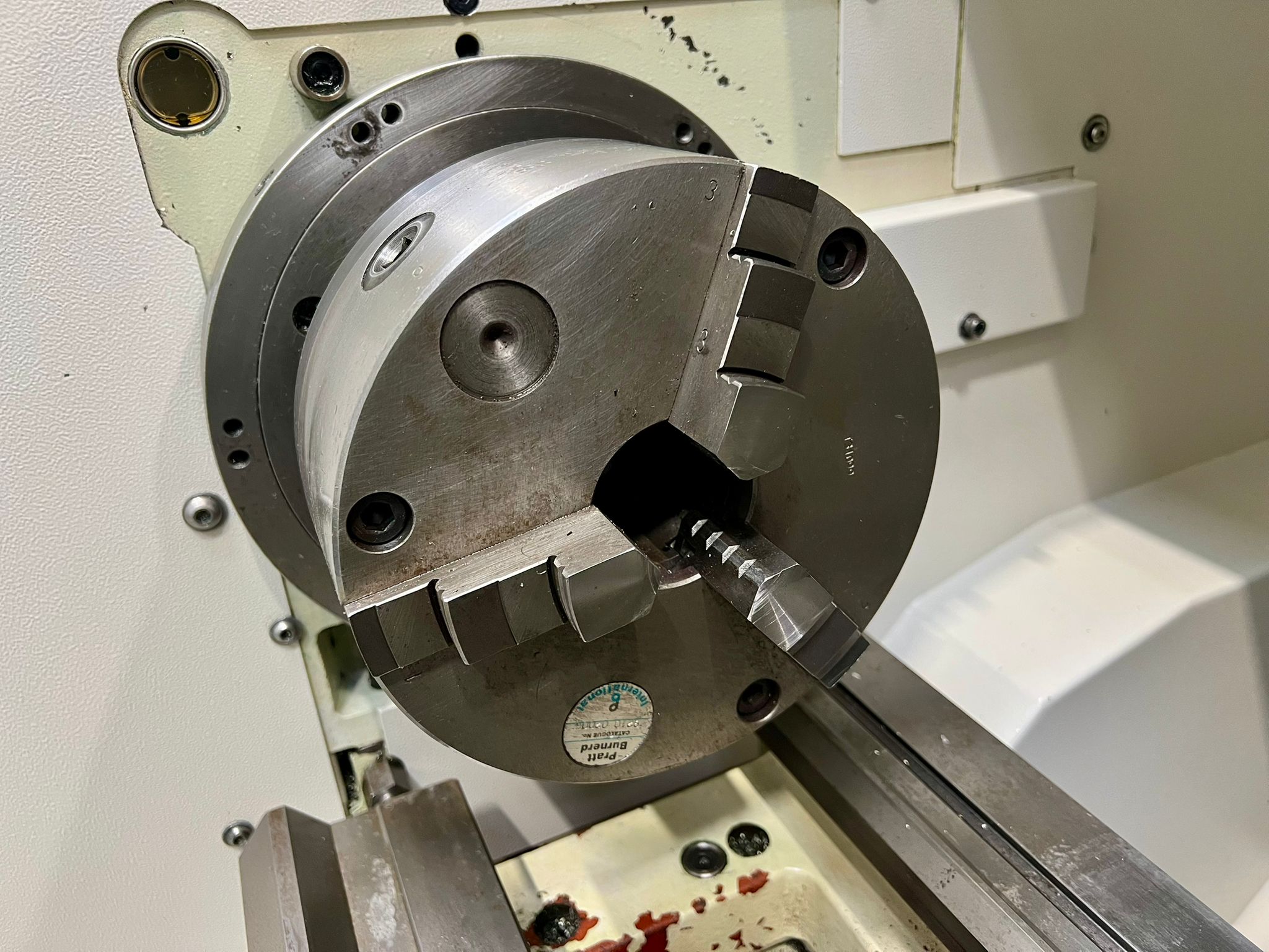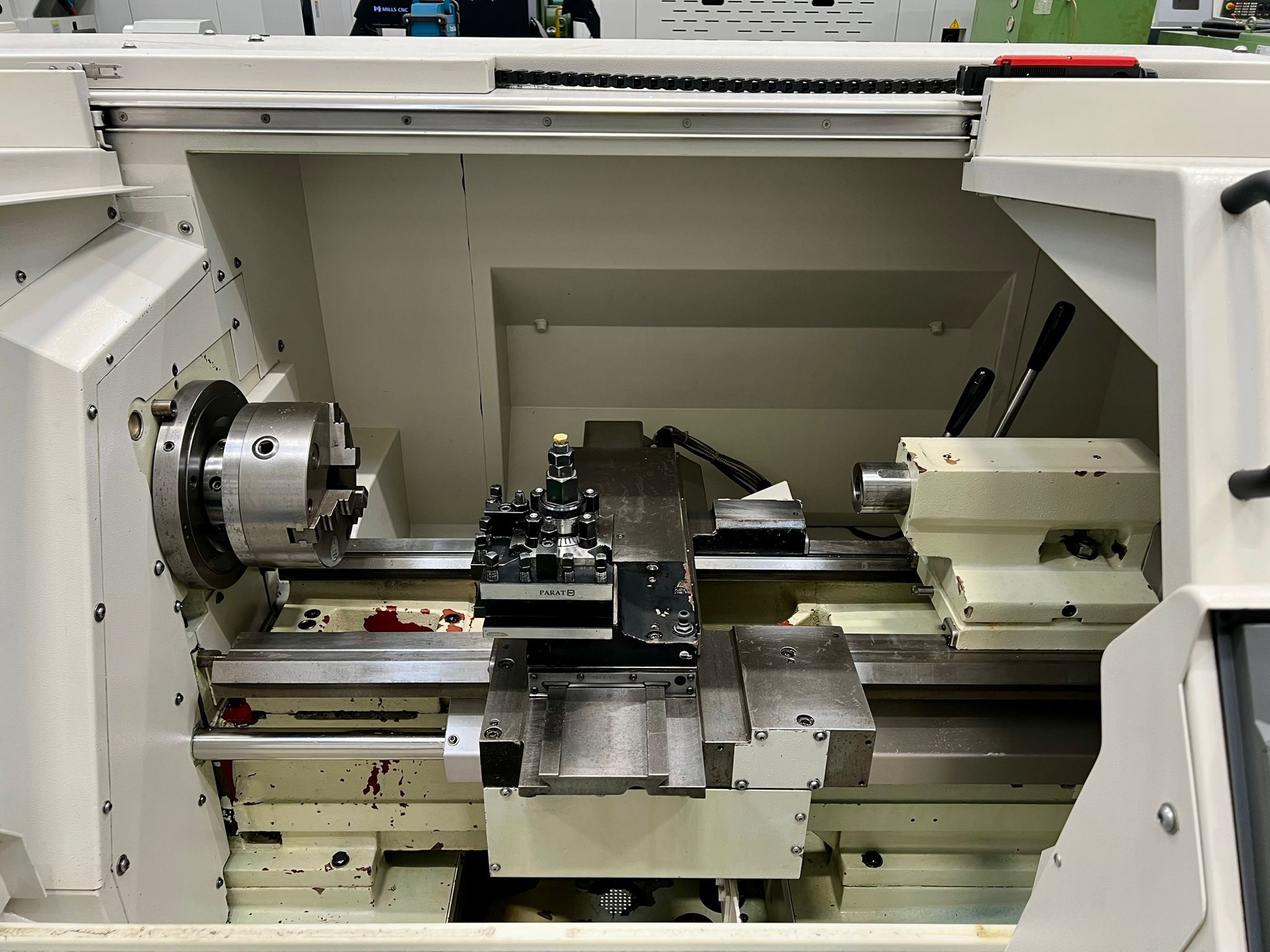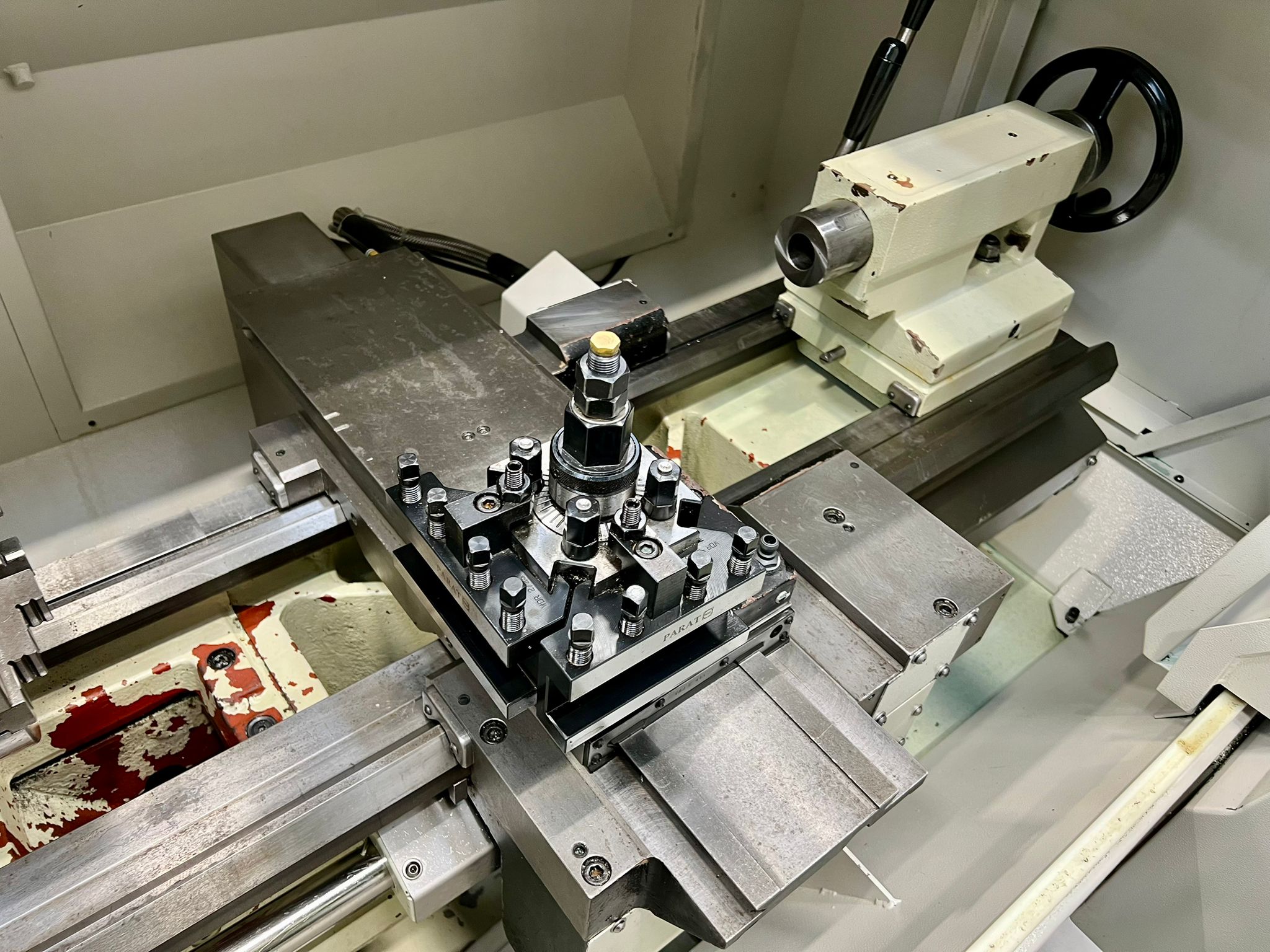 Distance between centres 1250mm. Swing over bed 400mm. Swing over cross slide 245mm. Swing in gap 585mm. Spindle speeds (3 range) 15 – 2500 rpm. Main motor 7.5 kW (10 HP). Spindle nose D.1-6 Camlock. Bore through spindle 55mm. Spindle diameter 73mm. Spindle travel 140mm. Taper of centre No. 5 Morse. Machine 3 jaw chuck. 4 way PARAT quick change toolpost with holders. Interlocked guards, Low volt lighting, Coolant.