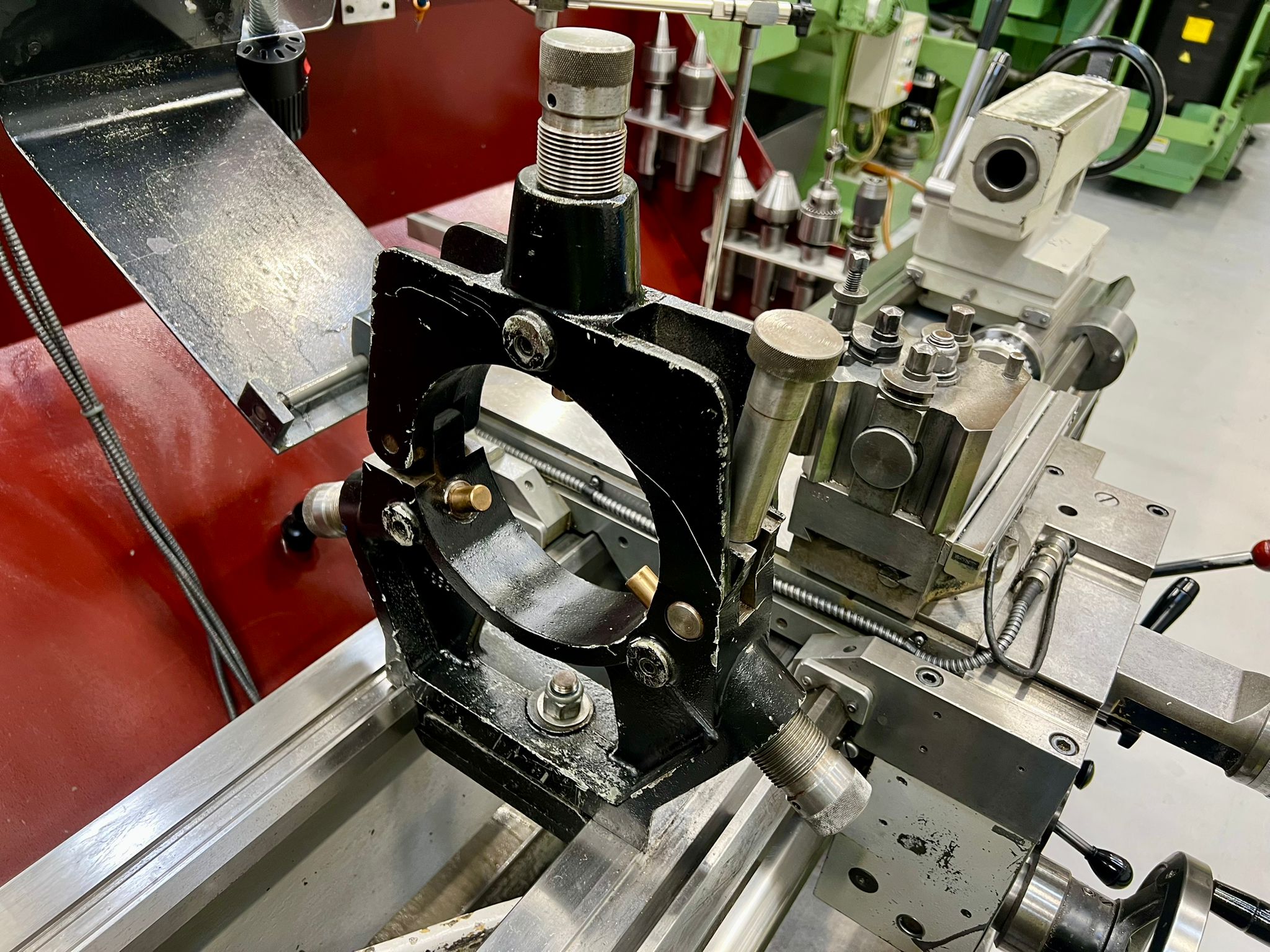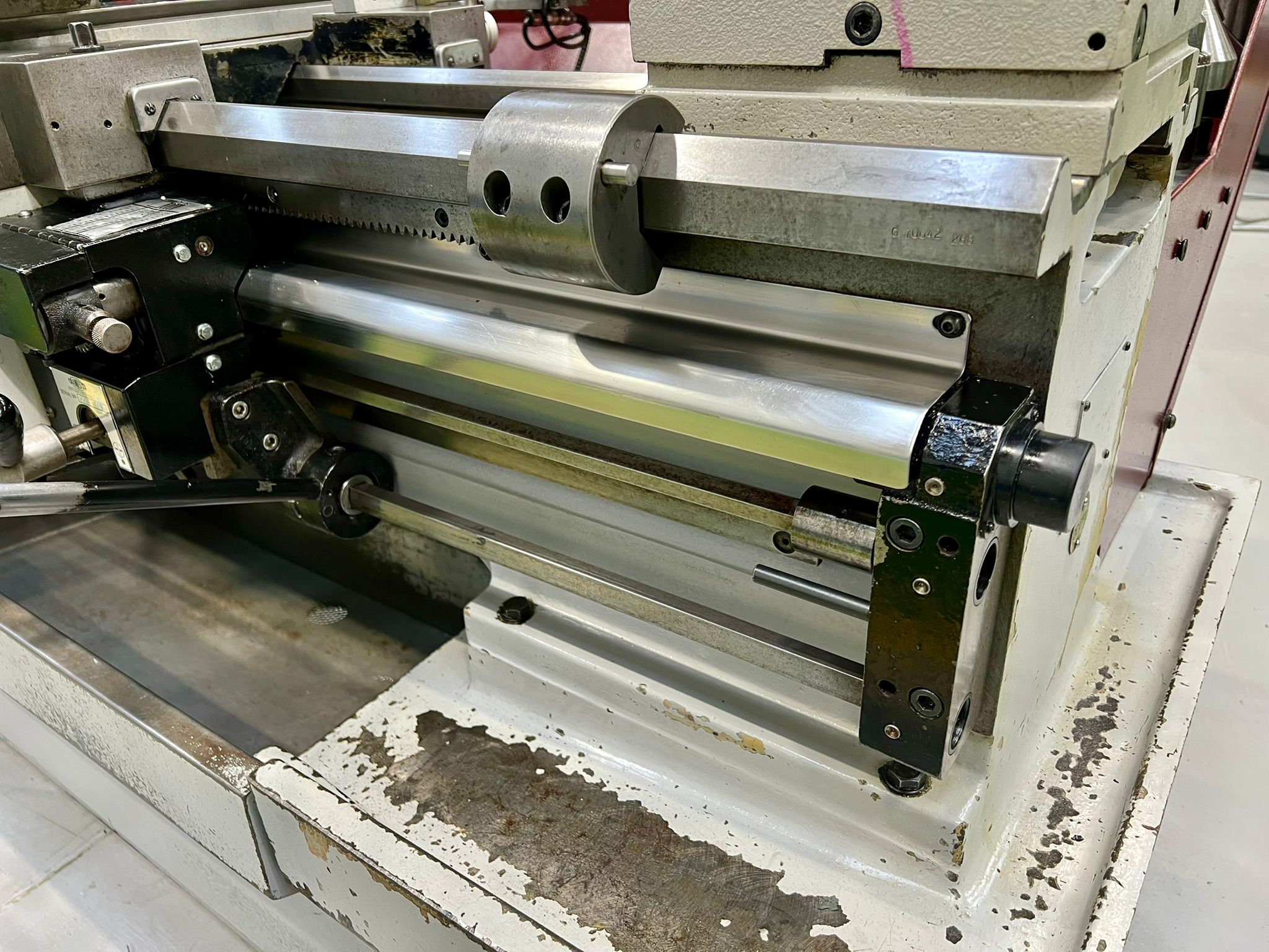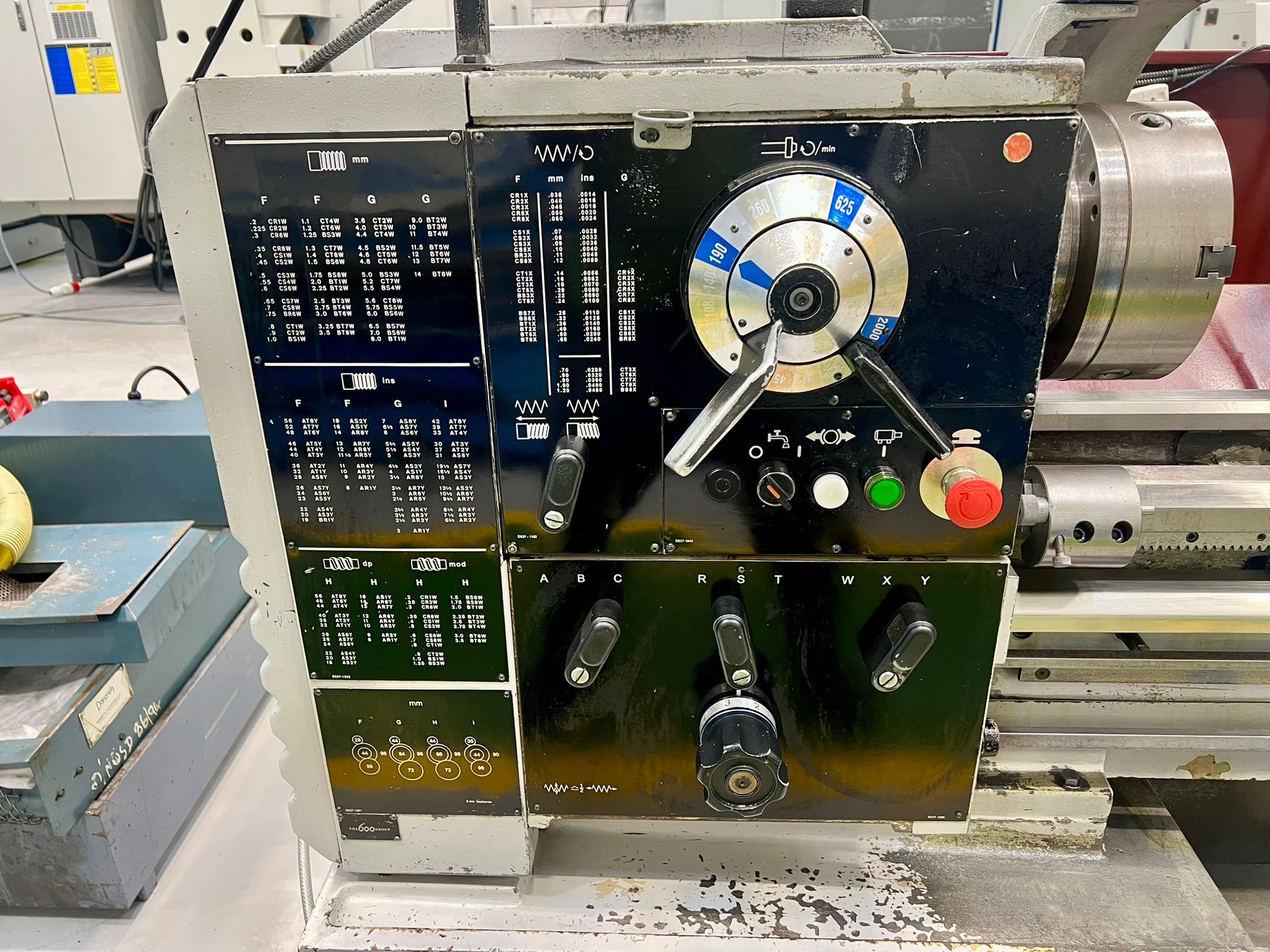 Swing over bed 390mm. Swing over cross slide 246mm. Swing in gap 585mm. Distance between centres 1250mm. Spindle bore 54mm. Spindle speeds 25-2000 rpm. Fitted with 240mm dia 3 jaw chuck. 355mm dia. faceplate. Fixed steady 160mm dia. capacity. Quick change toolpost. Coolant. SONY Digital Readout.