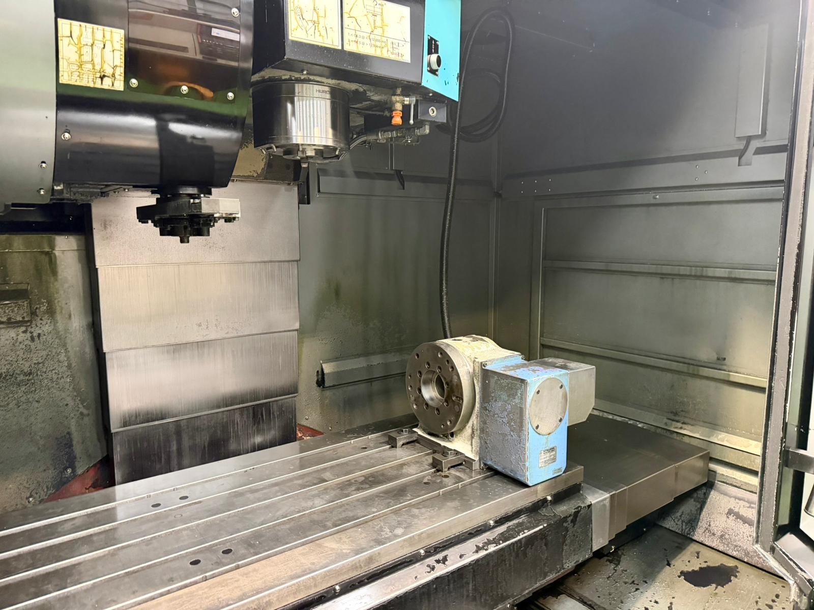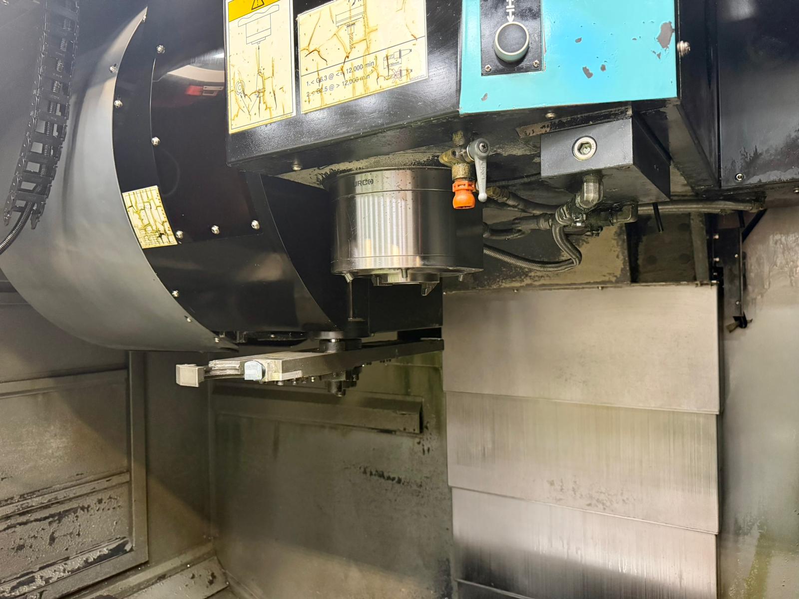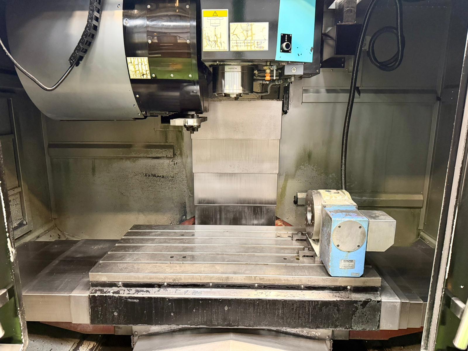 Table size 1270mm x 610mm. X/Y/Z travels 1060mm/610mm/610mm. Spindle speed 10,000 rpm. Spindle power 15 kW. Spindle taper CAT40. Table loading 500kg. 24 ATC. Rapids X/Y/Z 30m/30m/20m minute. Machine fitted with Kitagawa 4th Axis Attachment. Thro’ spindle coolant. Swarf Conveyor. Ultimax Control.