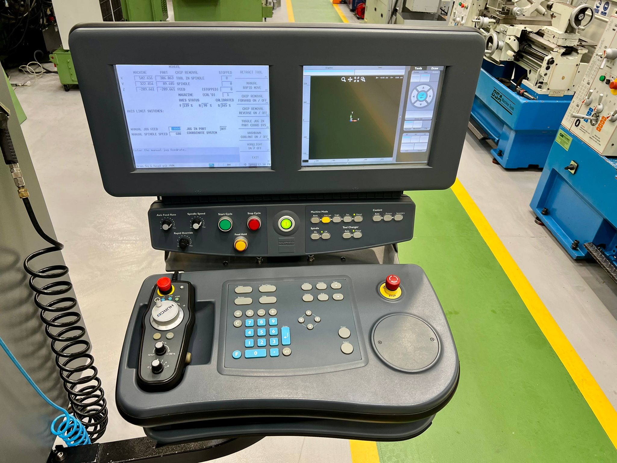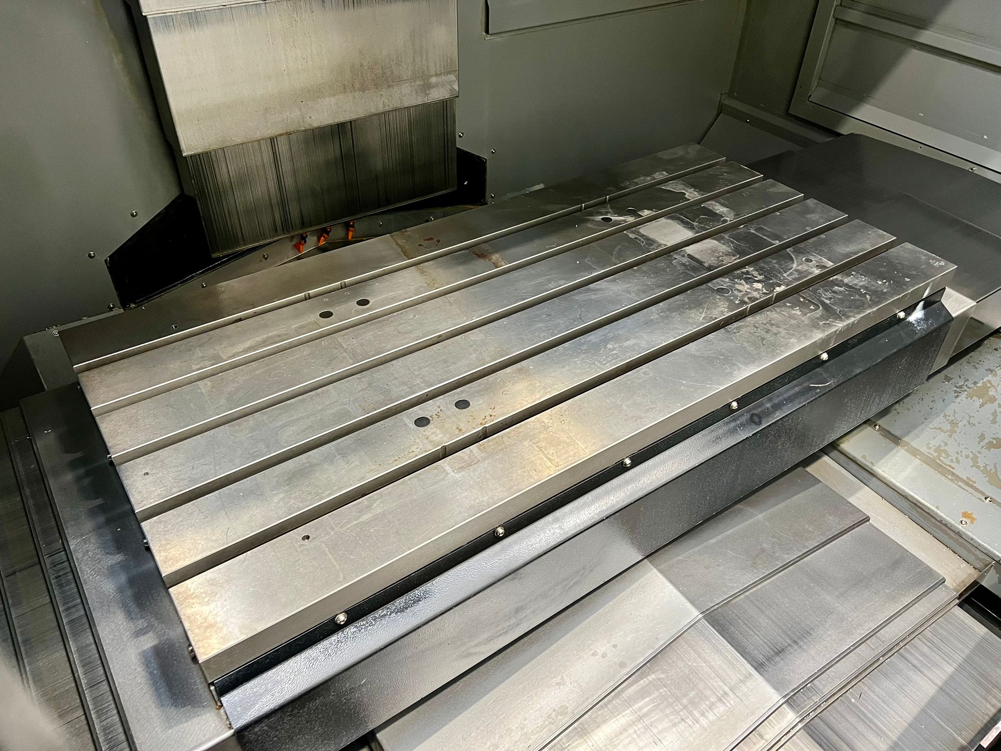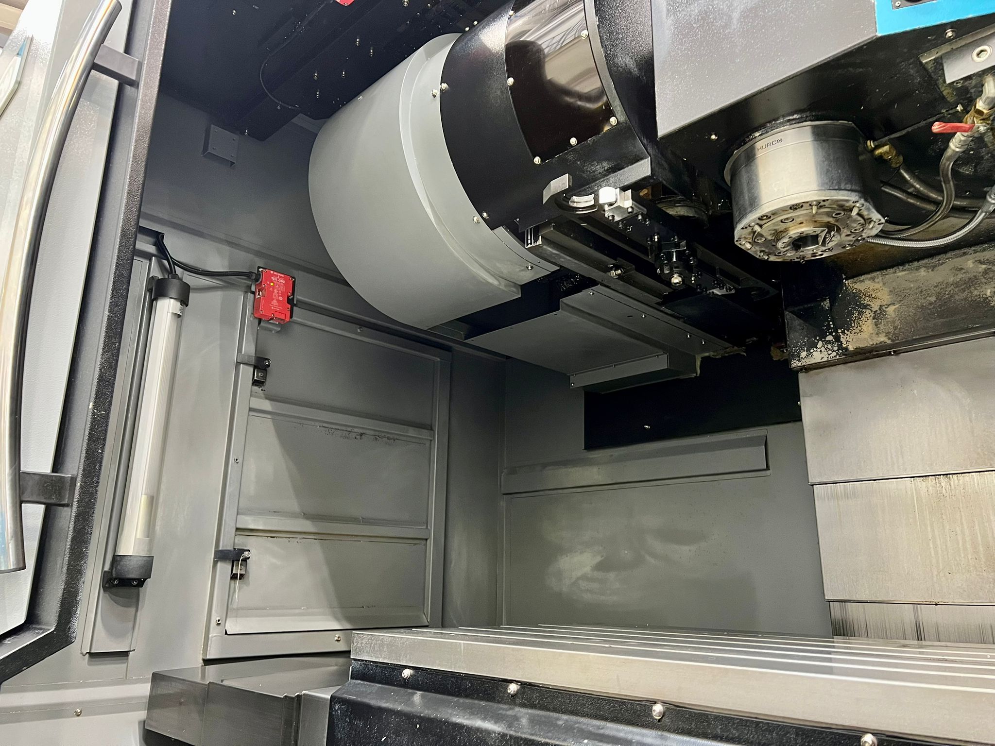 Travels X/Y/X 1067/610/610mm. T-Slot Size 5 x 18mm. Max. Weight on Table 1750Kg. Table Size 1,270 x 610mm. Spindle Nose to Table 152mm. Max Spindle Speed 12,000RPM. Spindle Power 18Kw. Spindle Torque 237 Nm @ 1450 rpm. Tool Type BT40. Number of tools 40. Max Tool Diameter 80mm. Max Tool Length 300mm. Max Tool Weight 7Kg. Rapid Traverse X,Y,Z Axis 38, 38, 32 m/min. Max Programmable Feedrate 20 m/min. Helical Ramp. Simultaneous 5 Axis Machining. Ulti-motion. Tool Change optimization. 5 Axis Trunion Table. Sward Conveyor. Filtermist.