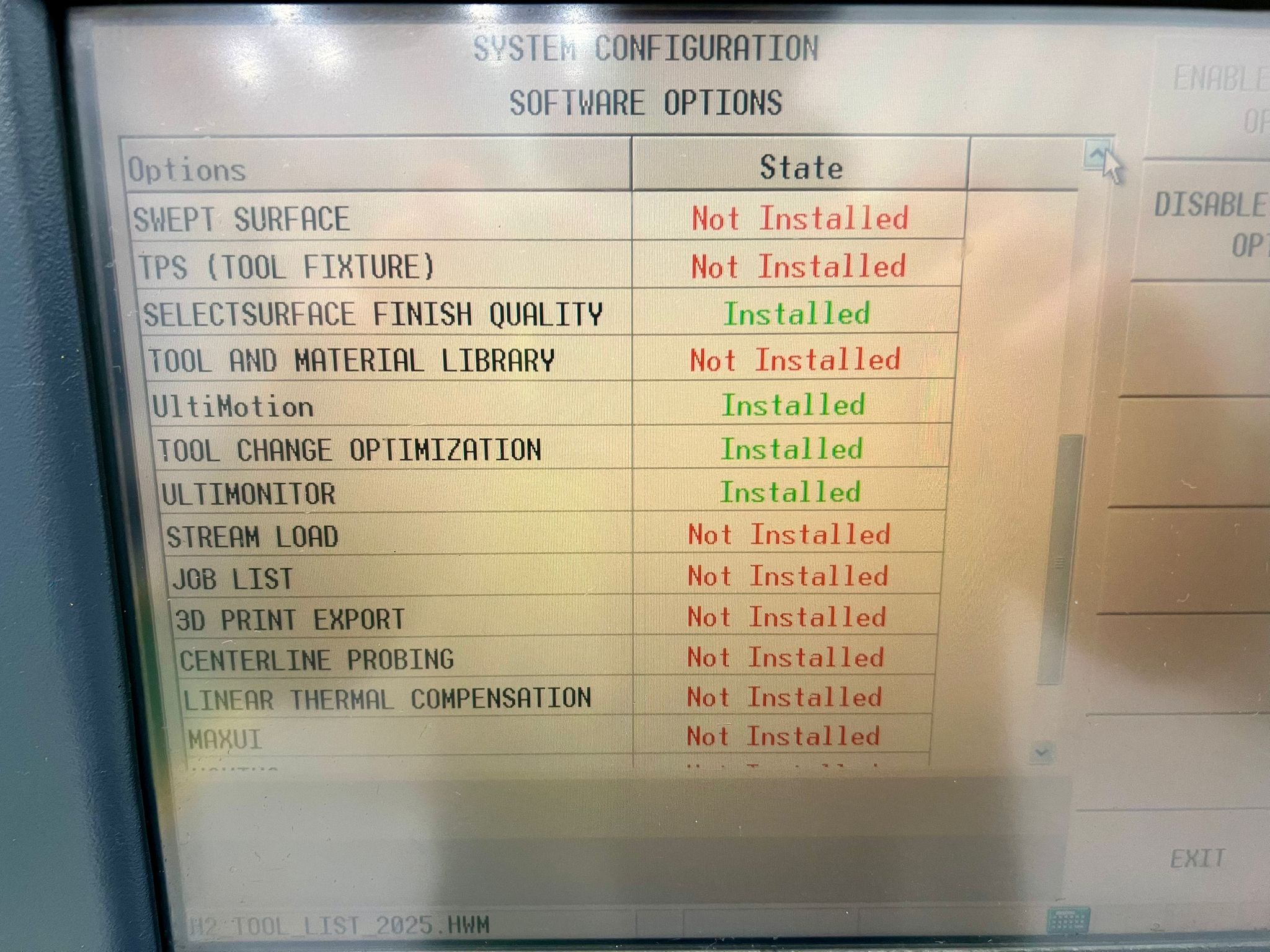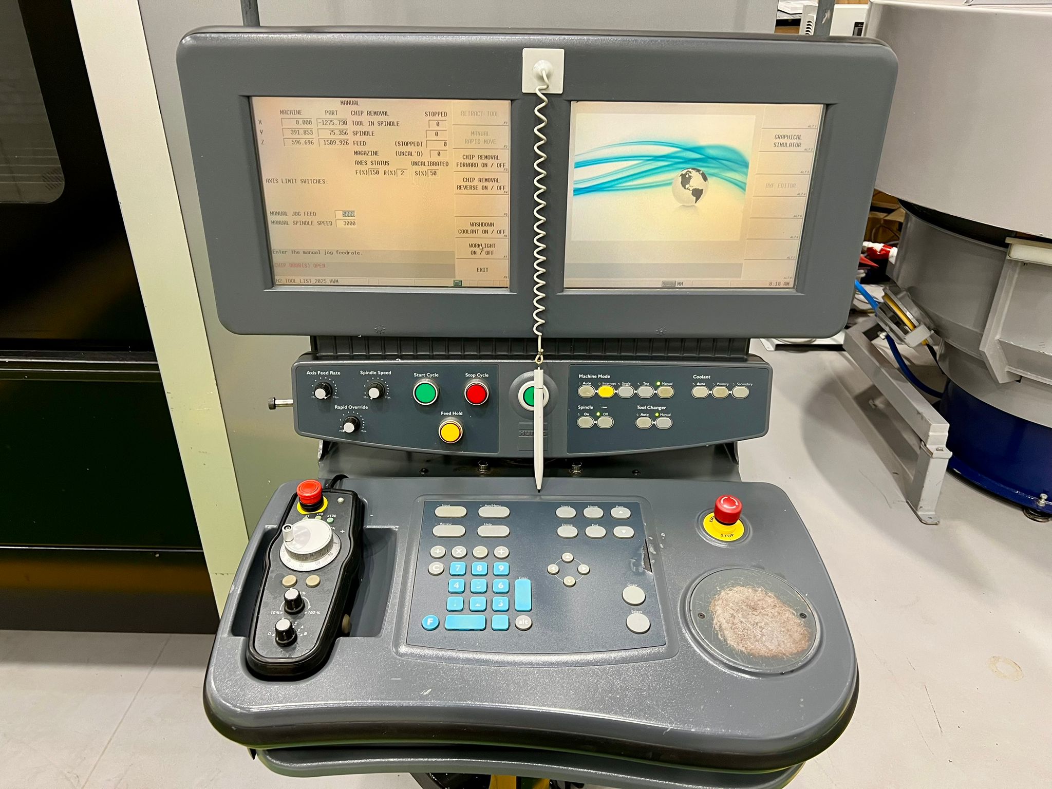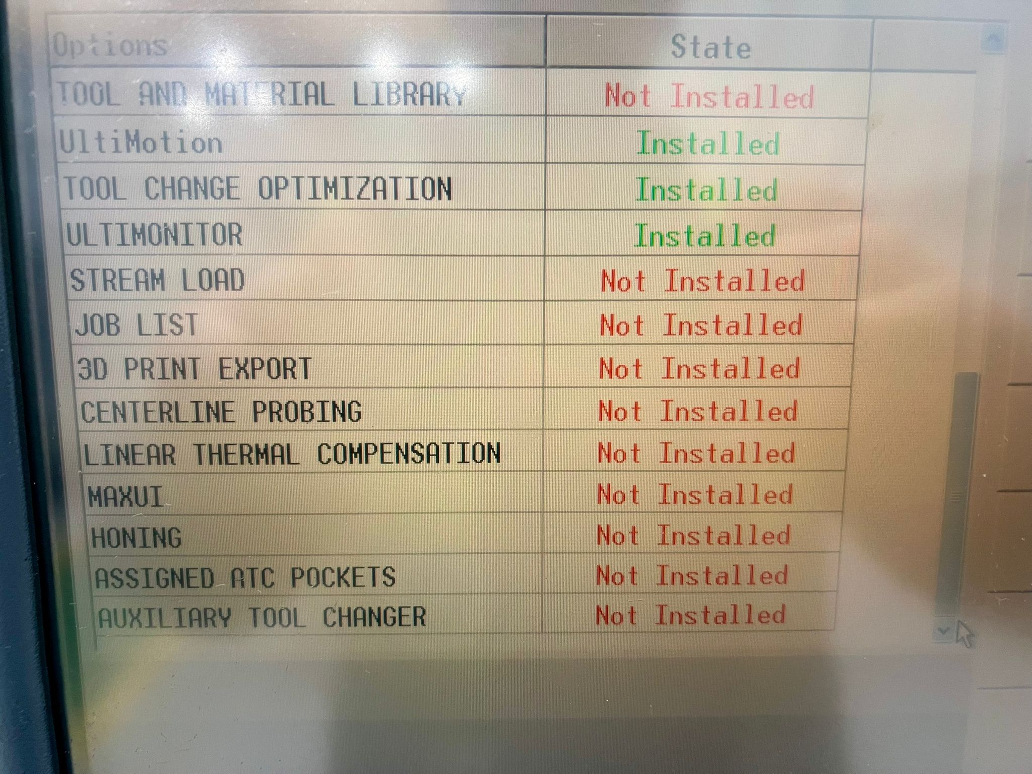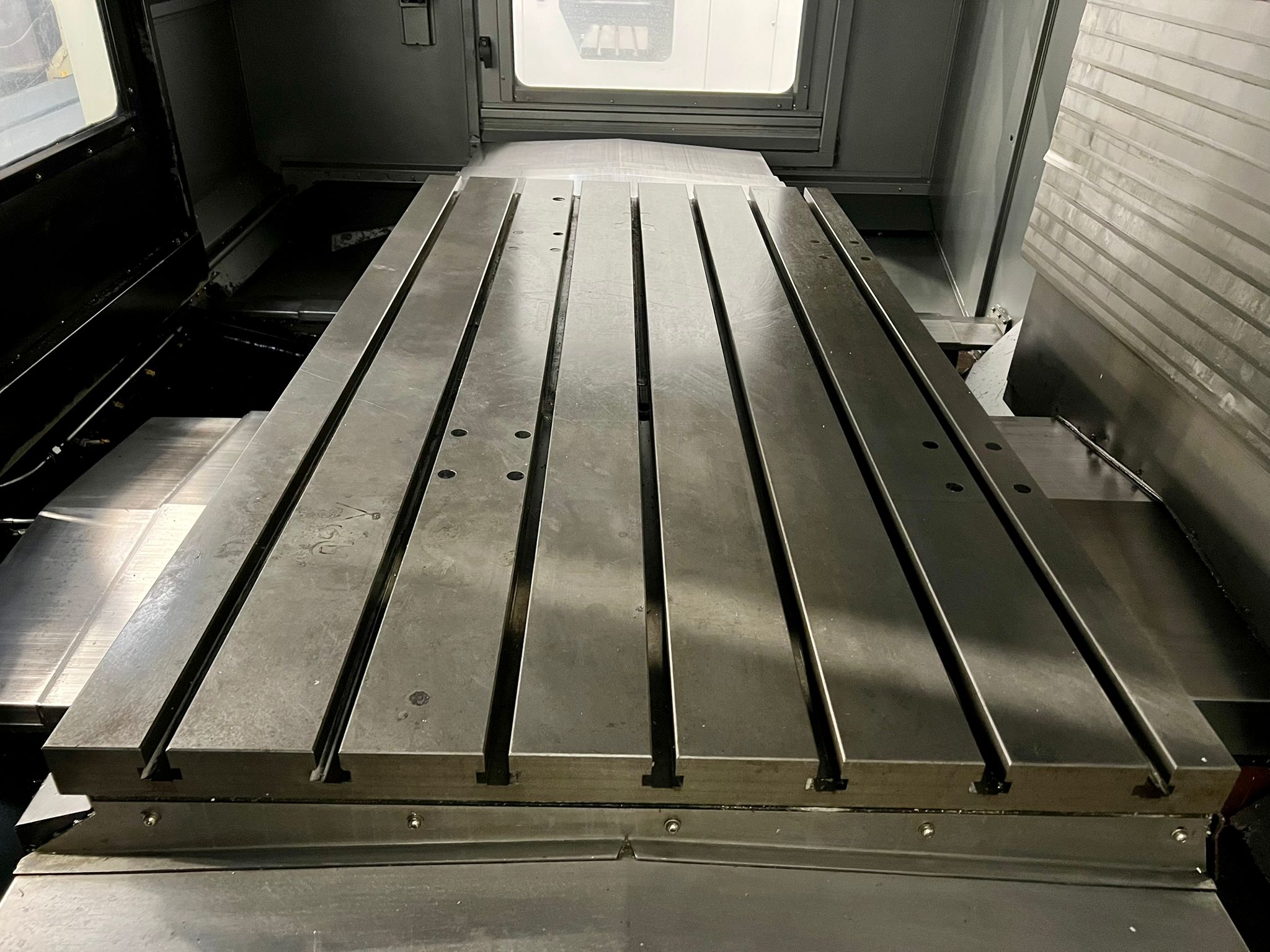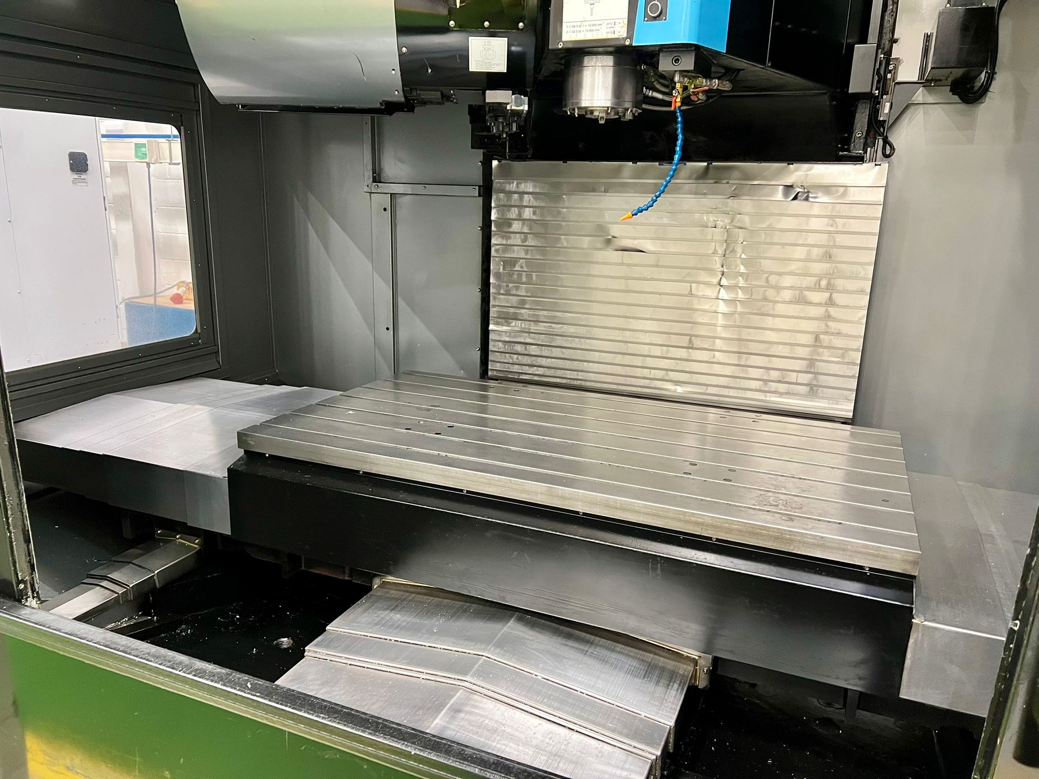 Table size 1676mm × 889mm. Travels X/Y/Z 1625/864/762. T-Slot Size 7 x 18mm. Max. Weight on Table 2,722 kg. Spindle Nose to Table (min/max) 127mm/890 mm. Spindle Taper BT40. Maximum Spindle Speed 12,000 rpm. Spindle Power (peak – 1 min) 22.2 kW. Spindle Torque (peak – 1 min) 353 Nm @ 750 rpm. Number Of Tools 32. Max Tool Diameter 125mm. Max Tool Length 300mm. Max Tool Weight 15Kg. Rapid Traverse X/Y/Z Axis 18/18/13.5 m/min. Max Programmable Feedrate 13.5 m/min.