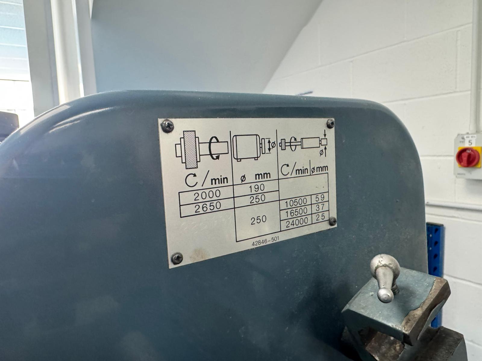Maximum swing 254mm. Maximum distance between centres 457mm. Table traverse 76mm-4572mm/min. Table swivel included angle 20°. Machine extensively equipped with 3&4 jaw chucks. 6 x steadies. Magnetic Chuck. Internal attachment. Spare grinding wheel hubs. Grinding wheels. Wheel dresser. Coolant/Filtration Unit. Machine Serial No. BO 93174.