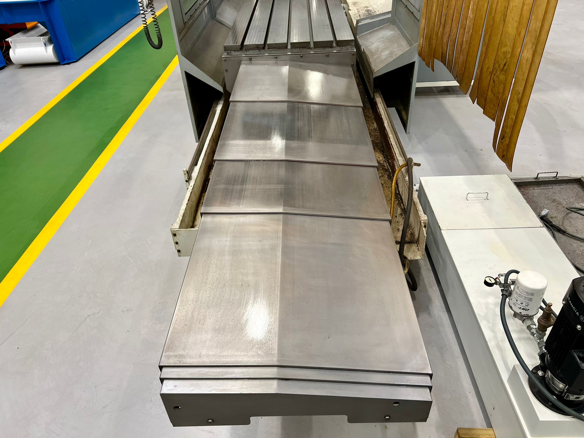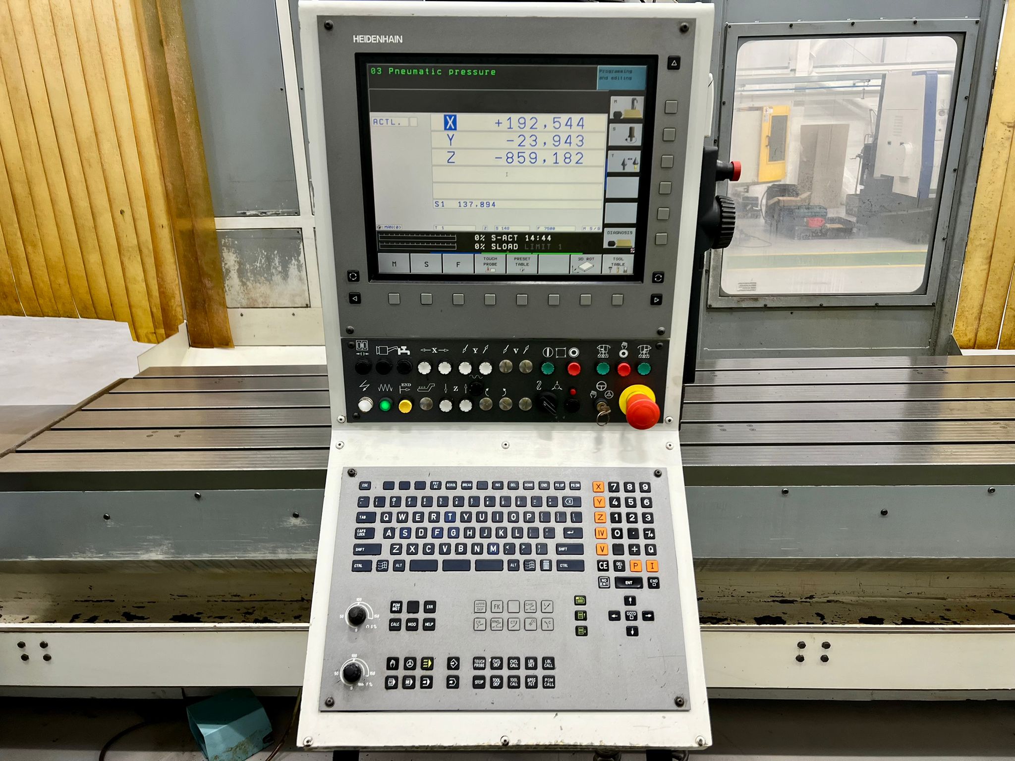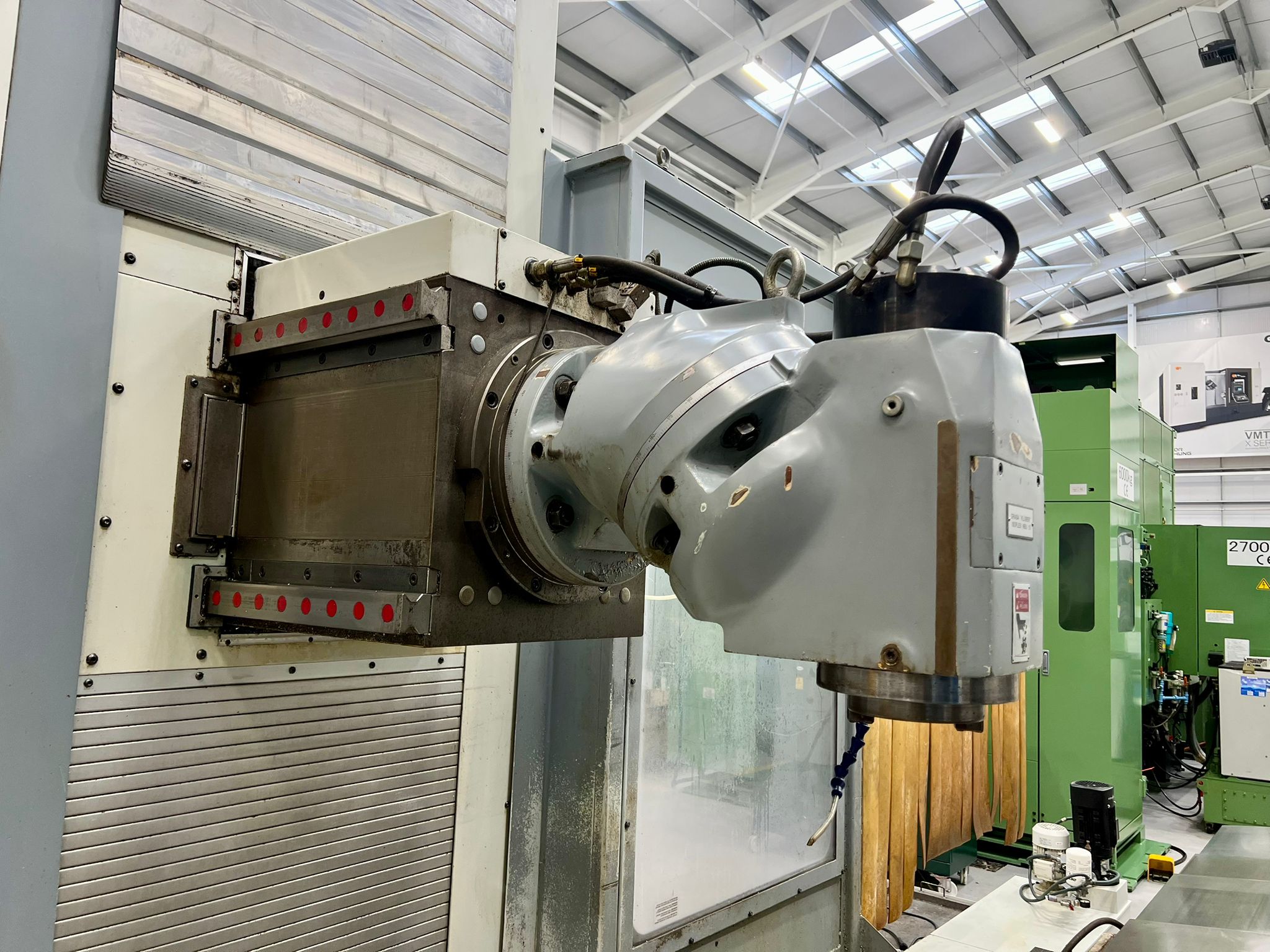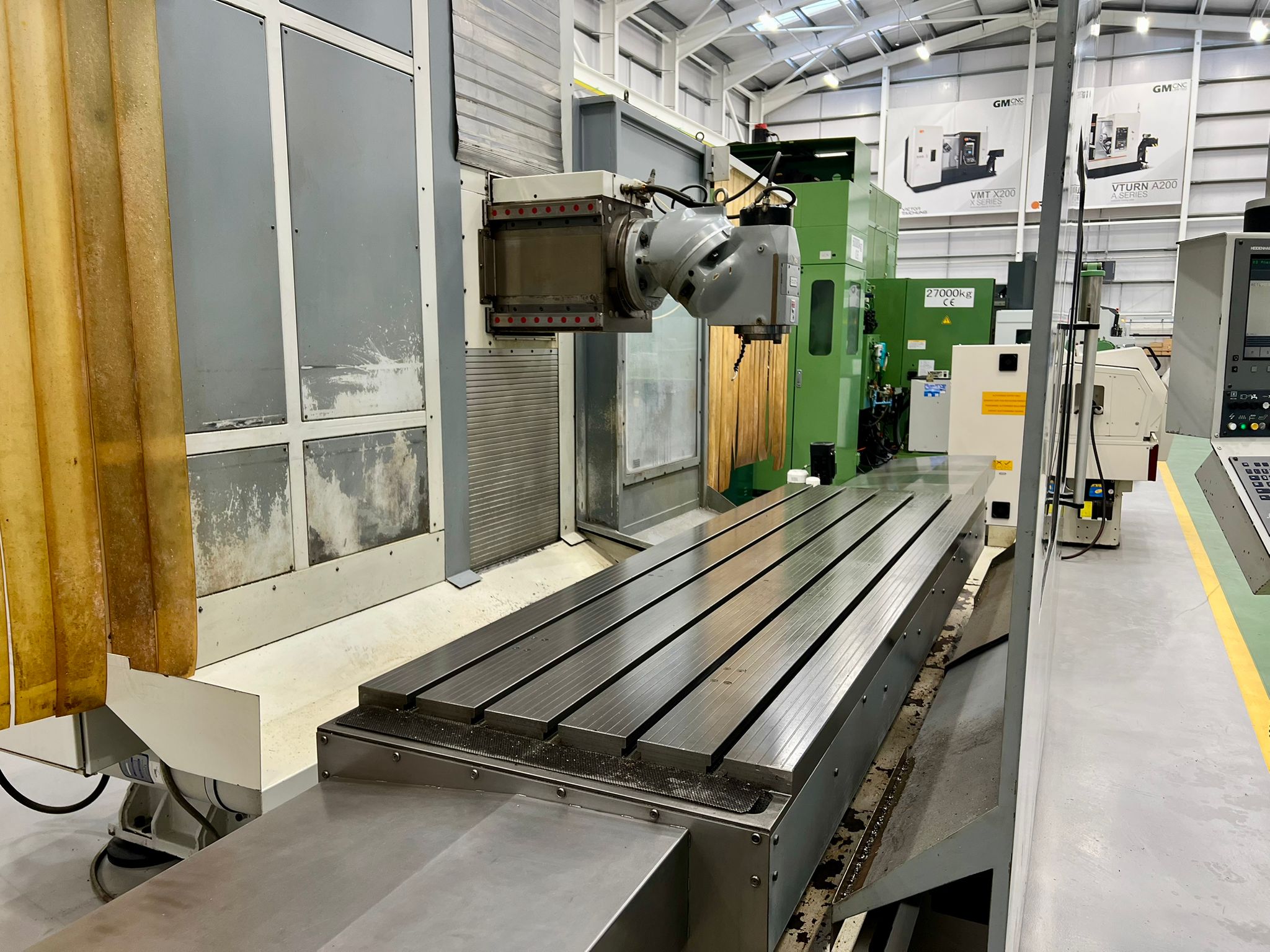 Table size 3100mm x 900mm. Longitudinal travel 3000mm. Cross traverse 1000mm. Vertical traverse 1500mm. Maximum weight on table 6000 kg. Spindle taper 50 ISO. Maximum speed range 3000 rpm. Main motor power 22 kW. Rapids 20m/min. Heidenhain TNC530 Control. Manual toolchange. Manual indexing head. Coolant. Selection of spindle tooling. Machine has done very little work since new only the machining of plastics.