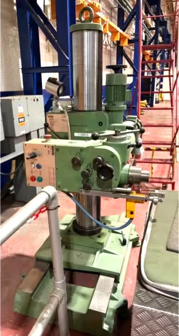 Drilling Capacity In Steel (TS 600 MPa) 32mm dia. Drilling Capacity In Iron Cast (TS 250 MPa) 40mm dia. Spindle Travel 190mm. Spindle dia. 60mm . Spindle Taper MT4. Spindle Speeds 24,48,75,150,380,760,1,200,2,400rpm. Feeds Range 0.09, 0.12, 0.25mm/rev. Min/Max Distance Between Spindle Axis & Column Axis 410mm/1030mm. Min/Max Distance Between Spindle Nose & Floor 100mm/1,300mm. Min/Max Distance From Spindle Axis To Floor (Horizontal Spindle) 560mm/1,570mm. Vertical Travel Of Arm 1,040mm. Column Travel On Bed 600mm. Bed Size 840 x 1,400mm. Head Tilting (90° Up & 90° Down) 180°. Head Rotation 360°. Column Rotation 360°. Column dia.190mm. Machine Height 2,000mm. Arm Vertical Rapid Traverse 1,650mm/min. Machine Serial No. 200711. Year of manufacture 2011.