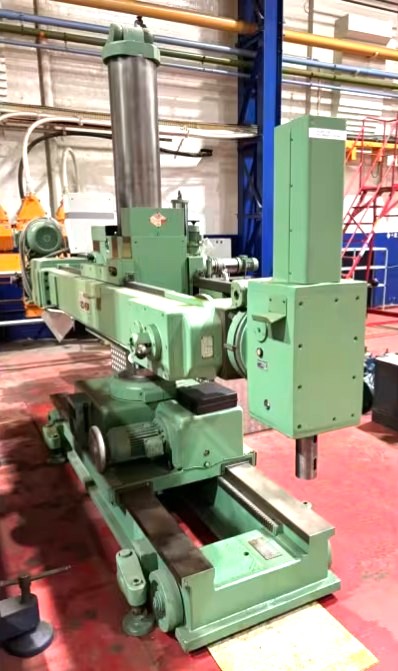 Spindle dia. 60mm. Spindle taper 5MT. Drilling capacity in steel (TS 600 MPa) 60mm. Drilling capacity in Cast Iron steel (TS 250 MPa) 70mm. Tapping capacity in steel (TS 600 MPa) 60mm. Spindle Travel 350mm. Spindle dia. 60mm. Spindle Taper MT5. No. Spindle Speeds  30,45,70,100,155,240,340,515,800rpm. Feeds 0.05,0.1,0.2,0.3mm/rev. Min/ Max Distance Between Spindle Axis & Column Axis 1,000mm/2,120mm. Min/Max Distance Between Spindle Nose & Floor 0mm/1,940mm. Min/Max Distance From Spindle Axis To Floor (Horizontal Spindle) 90mm/2,750mm. Vertical Travel Of Arm 1,030mm. Max Tilting Of Arm Downwards 21°. Max Tilting Of Arm Upwards 9°. Column Travel On Bed 1,500mm. Bed Size 780mm x 2,570mm. With Feet 1,200 x 2,570mm. Head Tilting (90° Up & 90° Down) 180°. Head Rotation 360°. Column Rotation 360°. Column dia. 240mm. Machine Height 2,520mm. Arm Horizontal Rapid Traverse 1,650mm/min. Arm Vertical Rapid Traverse 1,500mm/min. Column Travel On Bed 1,650mm/min. Spindle Motor 5.5kW. Arm Horizontal & Vertical Traverse Motor 2.2kW. Machine serial no. 117753. Year 1981. Machine rebuilt 2011.