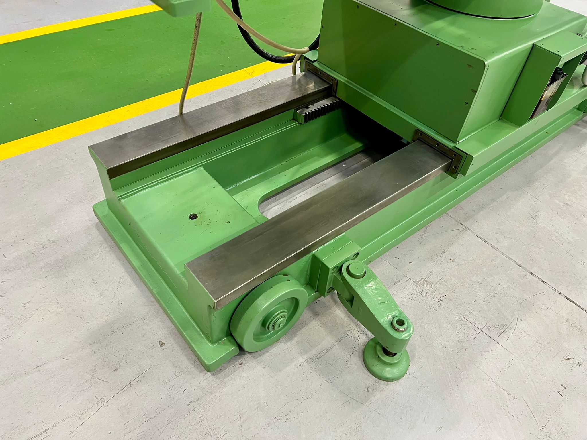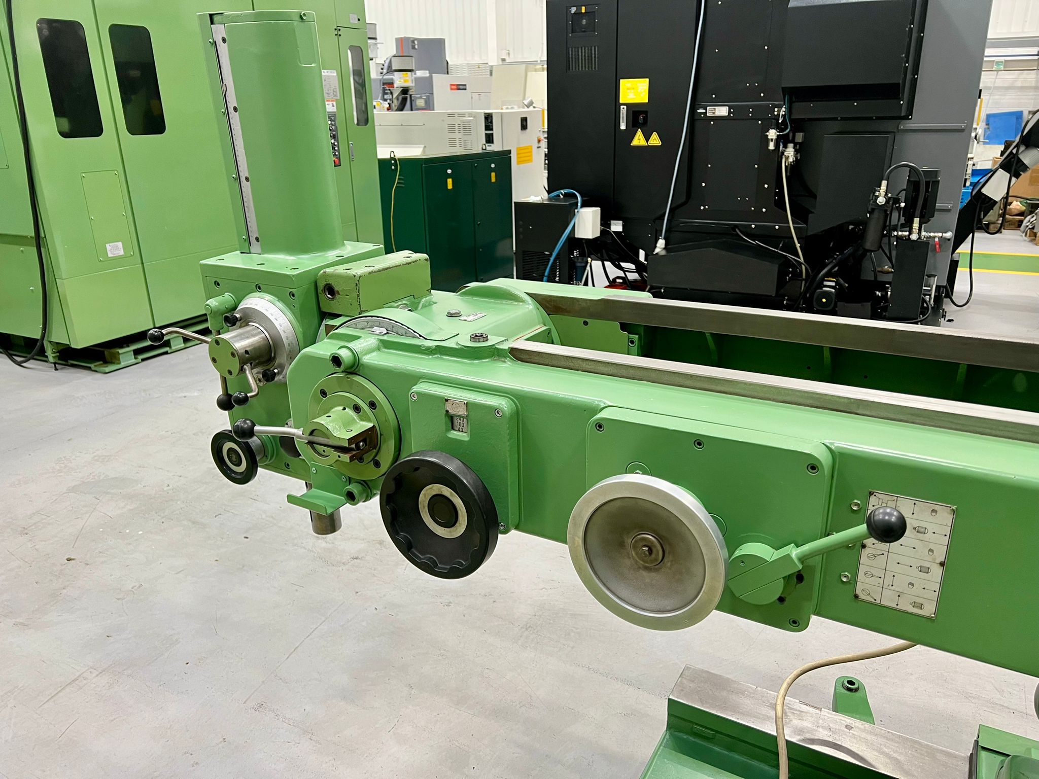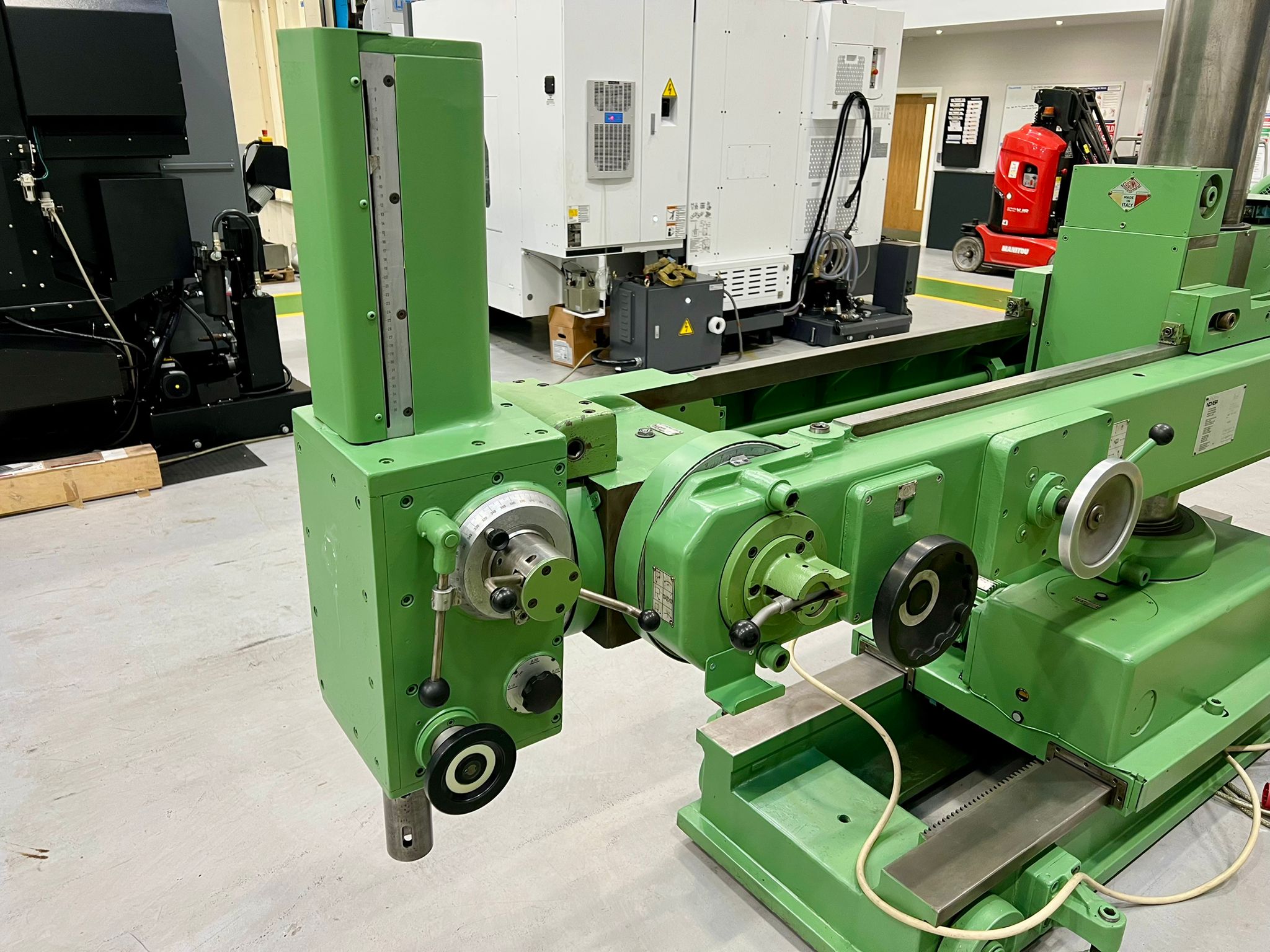 Spindle dia. 60mm. Spindle taper 5MT. Drilling capacity in steel (TS 600 MPa) 60mm. Drilling capacity in Cast Iron steel (TS 250 MPa) 70mm. Tapping capacity in steel (TS 600 MPa) 60mm. Spindle Travel 350mm. Spindle dia. 60mm. Spindle Taper MT5. No. Spindle Speeds 30,45,70,100,155,240,340,515,800rpm. Feeds 0.05,0.1,0.2,0.3mm/rev. Min/ Max Distance Between Spindle Axis & Column Axis 1,000mm/2,120mm. Min/Max Distance Between Spindle Nose & Floor 0mm/1,940mm. Min/Max Distance From Spindle Axis To Floor (Horizontal Spindle) 90mm/2,750mm. Vertical Travel Of Arm 1,030mm. Max Tilting Of Arm Downwards 21°. Max Tilting Of Arm Upwards 9°. Column Travel On Bed 1,500mm. Bed Size 780mm x 2,570mm. With Feet 1,200 x 2,570mm. Head Tilting (90° Up & 90° Down) 180°. Head Rotation 360°. Column Rotation 360°. Column dia. 240mm. Machine Height 2,520mm. Arm Horizontal Rapid Traverse 1,650mm/min. Arm Vertical Rapid Traverse 1,500mm/min. Column Travel On Bed 1,650mm/min. Spindle Motor 5.5kW. Arm Horizontal & Vertical Traverse Motor 2.2kW. Machine serial no. 117753. Year 1981. Machine rebuilt 2011.