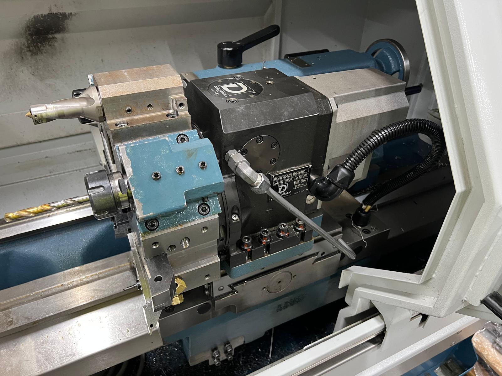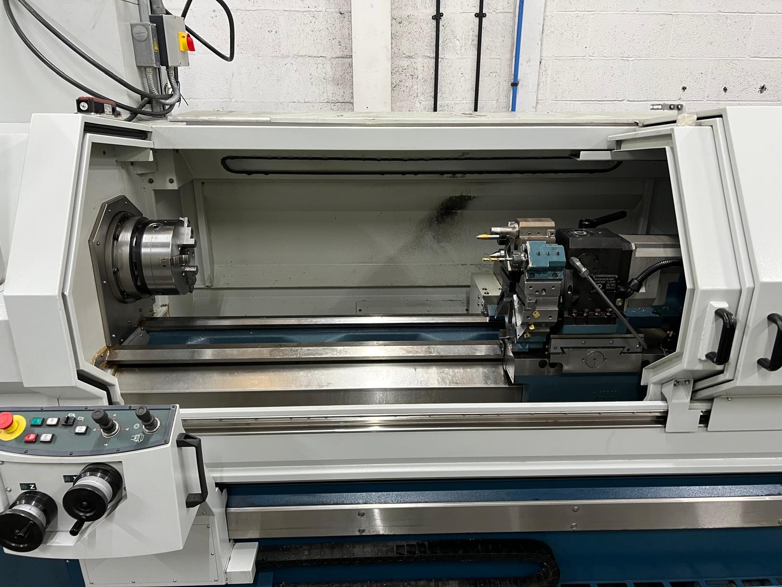 Distance between centers 1500mm. Swing over bed 520mm. Swing over cross slide 255mm. Swing over saddle wings 450mm. Travels X/Y 280/1555mm. Bed Wodth 340mm. Bed Height 336mm. Spindle nose A2-8″. Direct Drive. Rapid Traverse X/Z 10/10. Duplomatic Turret 8 Stations.