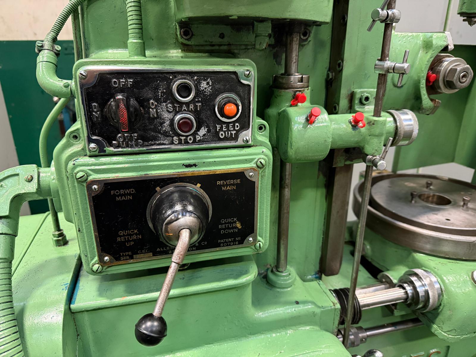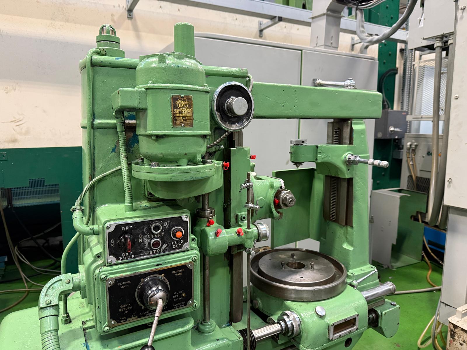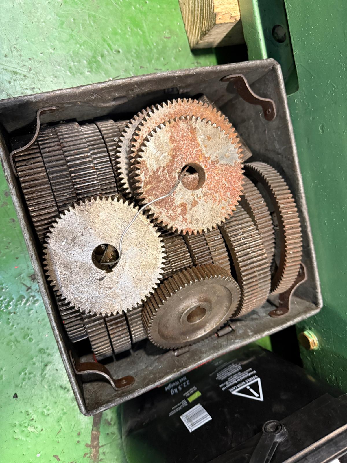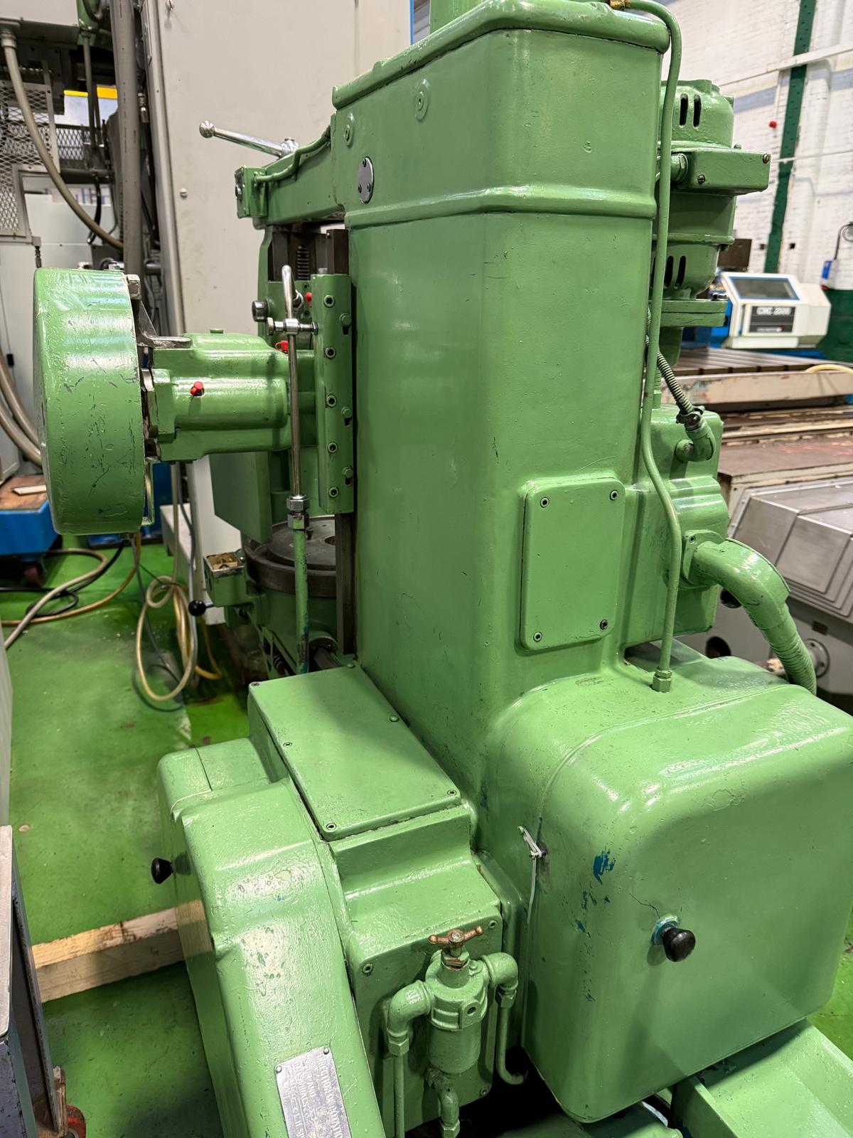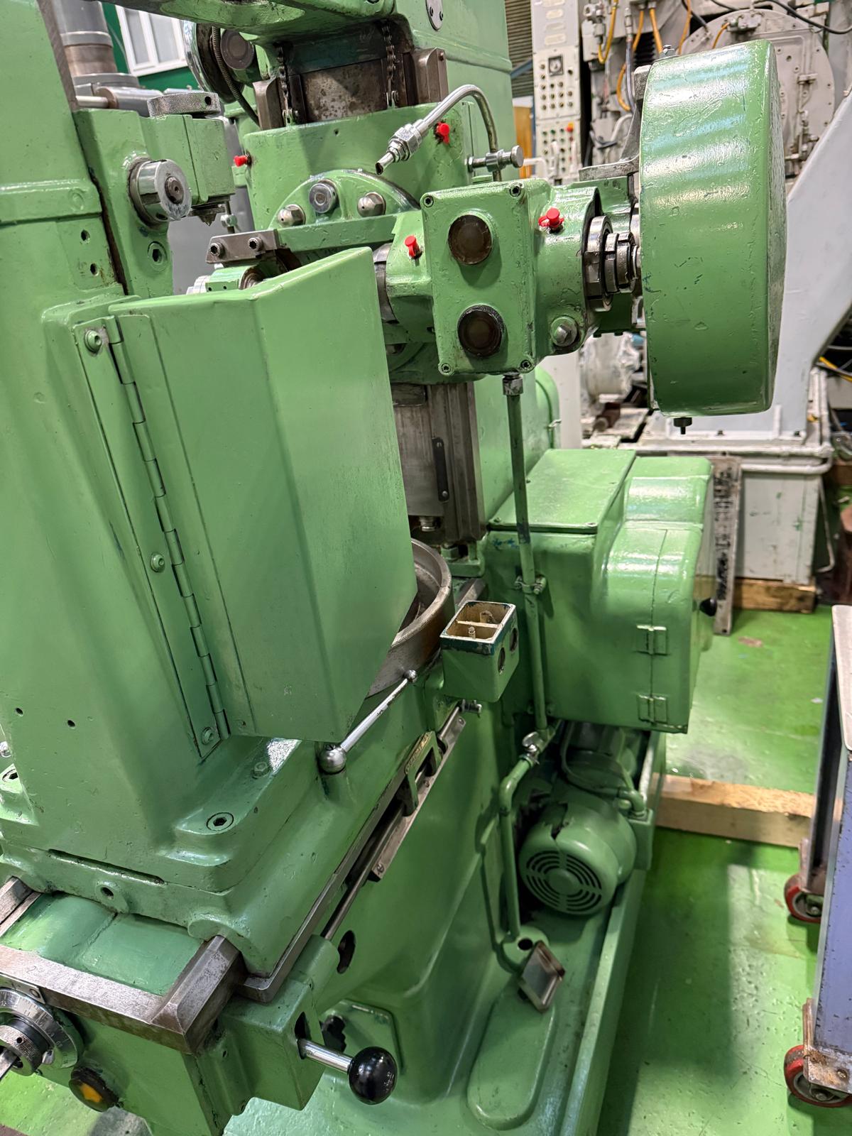 Maximum outside dia. (with steady column) 14”. Maximum outside dia. (without steady column) 15”. Maximum face width 9 inch. Hob speeds 74, 92,115, 143, 178, 224 rpm. Work table dia. 11”. Table bore 2.75” reducing to 1.75”. Maximum/minimum hob spindle to work table 9”/1.25”. Maximum distance work table to arbor support 17.25”. Complete with Change Gears.