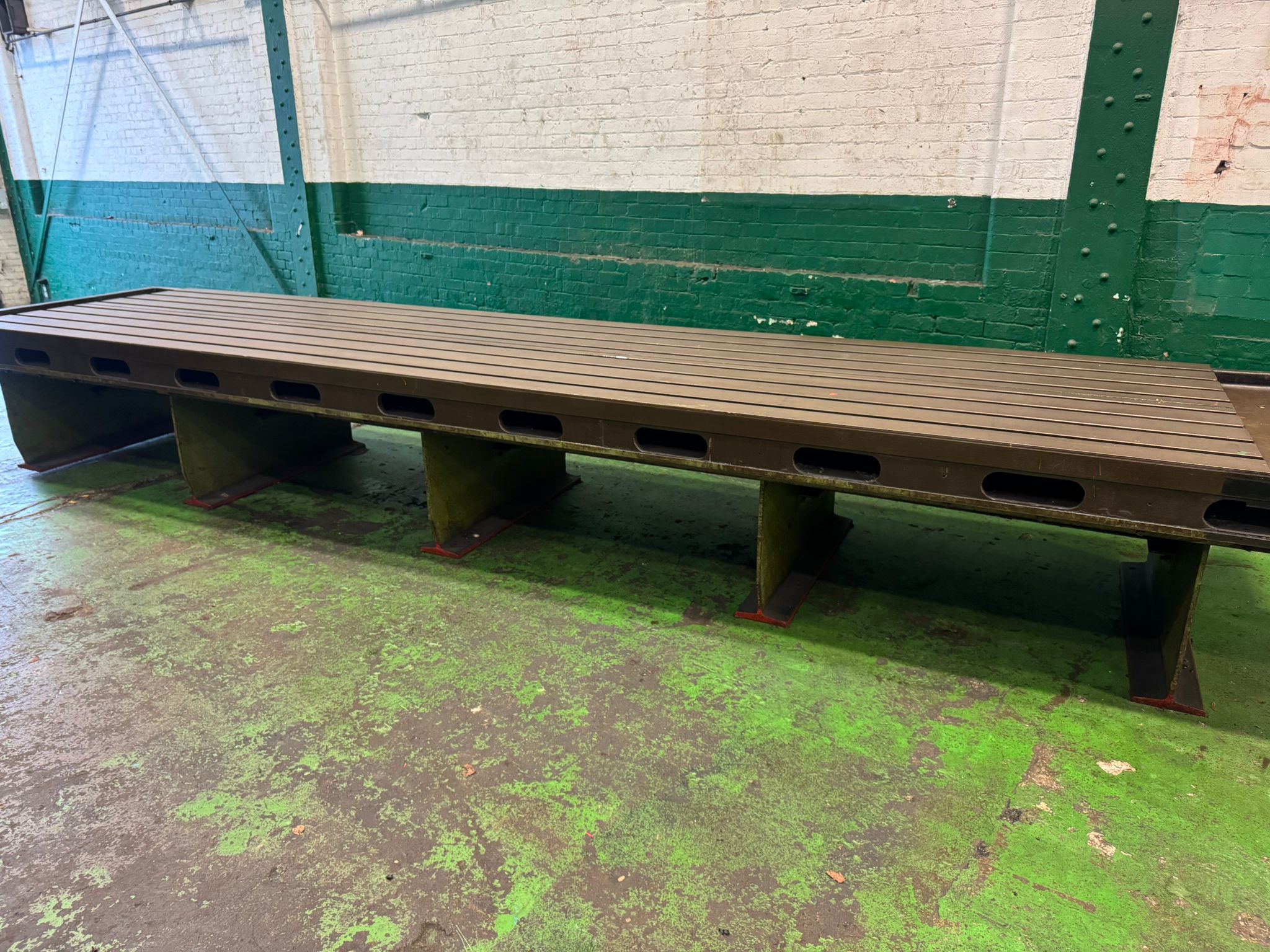 T Slotted dimensions 5511mm x 1371mm x 203mm thick. Overall dimensions 6500mm x 1370mm x 820mm high. Approximate weight 7700 kg.