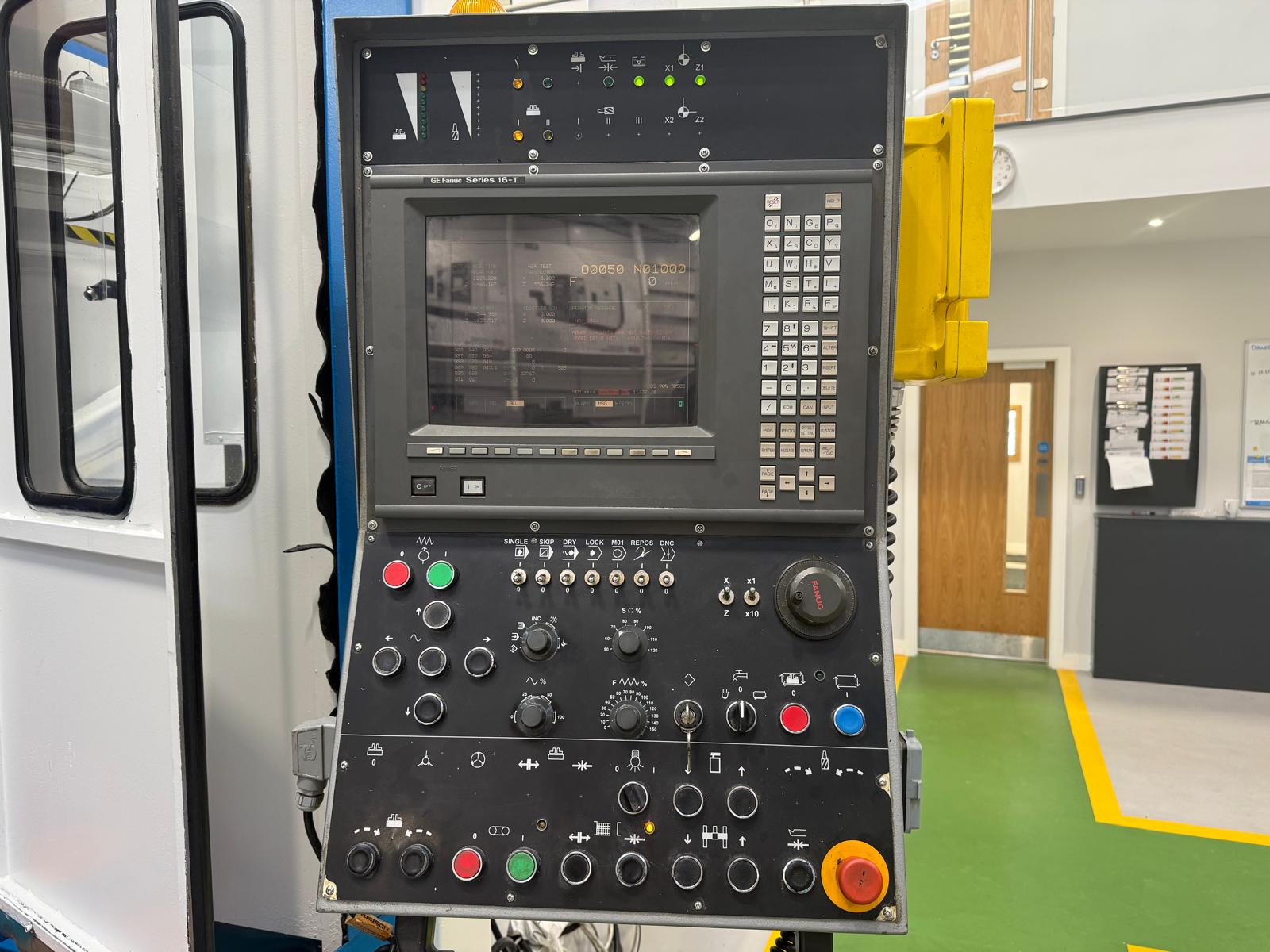 Chuck dia. 1600mm. Maximum turning dia. 2000mm. Maximum facing dia. 2000mm. Maximum distance from chuck face to toolholder 1680mm. Ram size 200mm x 180mm. Maximum ram travel 1000mm. Maximum work height 1500mm (using a standard 180mm long toolholder).Maximum table loading 12,000 kg. Auto Toolchanger (ATC) 15 positions. Maximum cutting force 44,000 N. Motor power 60 kW. Maximum size of tool shank 40mm x 40mm. Maximum cross rail stroke 800mm. Cross rail adjustment speed 287mm/min. Chuck dia. 1600mm. Speed range (2 Ranges) Low range 2.5 – 79 rpm. High range 10 – 315 rpm. Main motor power 60 kW. Main motor speed 100 – 4500 rpm. Feeds (up to a maximum 4m/min) 0.001 – 50mm/rev. Threading (up to a maximum 4m/min) 0.01mm – 400mm/rev. Horizontal carriage travels from the centre to the right 1100mm. Horizontal carriage travels from the centre to the left 1020mm. Distance of machine base to chuck face 920mm. Maximum distance from the chuck face to the lower edge of the carriage 1540mm. Lubricating oil consumption per 1000 hours 5 litres. Lubricant pressure 3 MPa. Coolant capacity 450 litres. Voltage 3 phase x 415V. Total machine power requirement 80 kVA. Machine complete with Toolholders. CMP swarf conveyor, ASTOS PF63 Paper Filtration Coolant System. Hydraulic Tank with cooling system. Handwheel. Machine manuals.