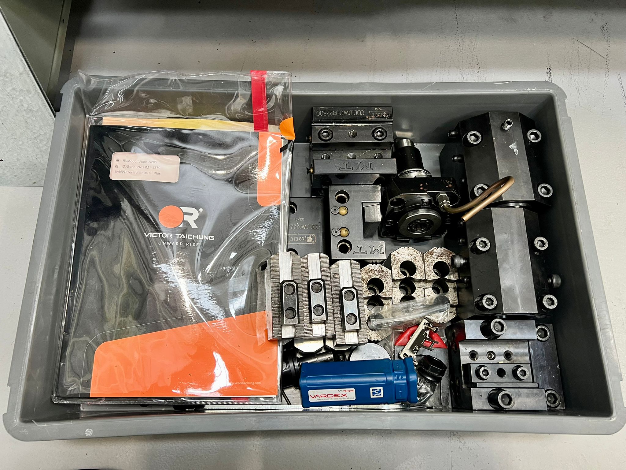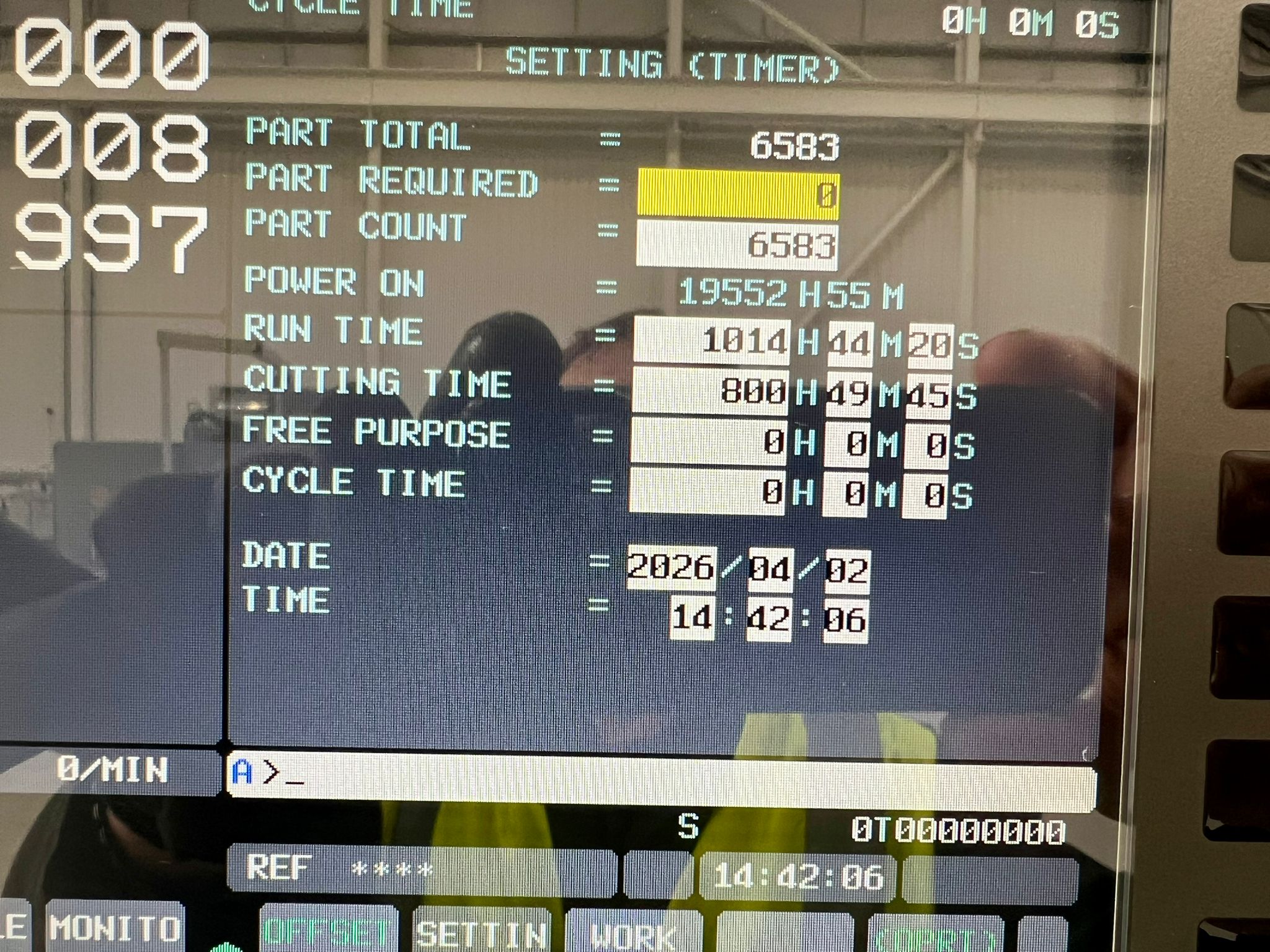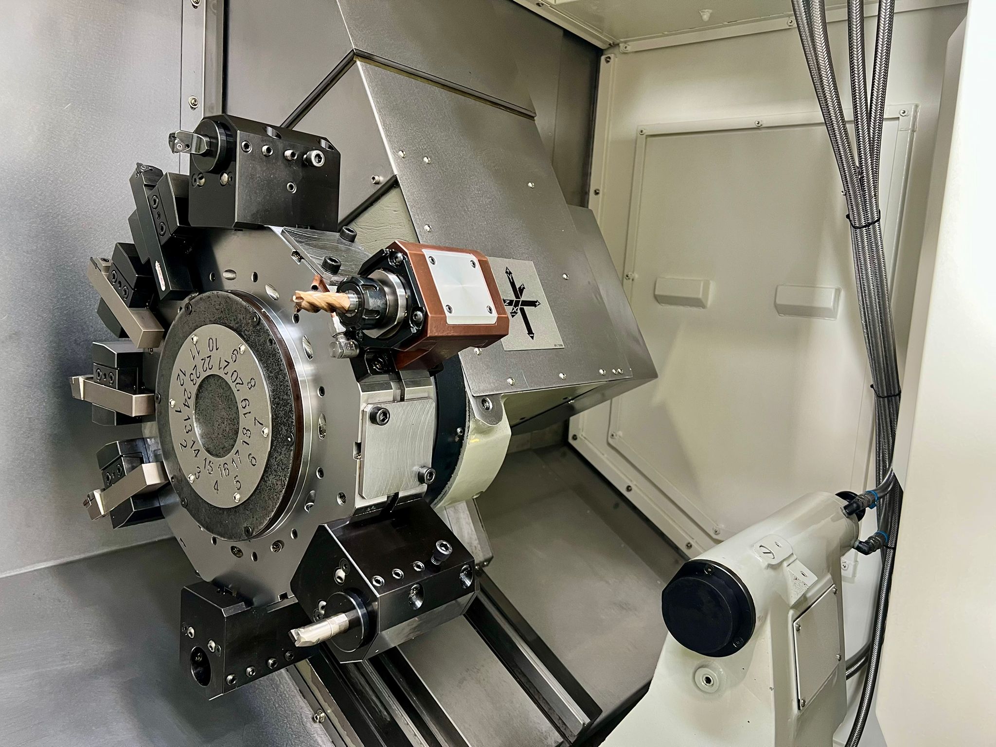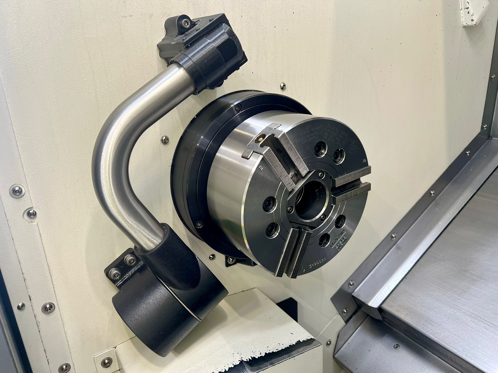 X/Z travels 150mm + 35mm/600mm. Y travel +/- 45mm. Maximum spindle speed 5000 rpm. Spindle nose A2-6 (8”). Spindle bore 62mm. 12 station turret – BMT-55 (all live stations). Maximum milling speeds 4000 rpm. Programmable Tailstock. Tailstock quill dia. 75mm. Quill travel 80mm. 4 MT. Main spindle motor 11/15 (15%) kW. Milling power 4.5 kW. Coolant capacity 290 litres. Manual Guide I (MGI). High Pressure Coolant.