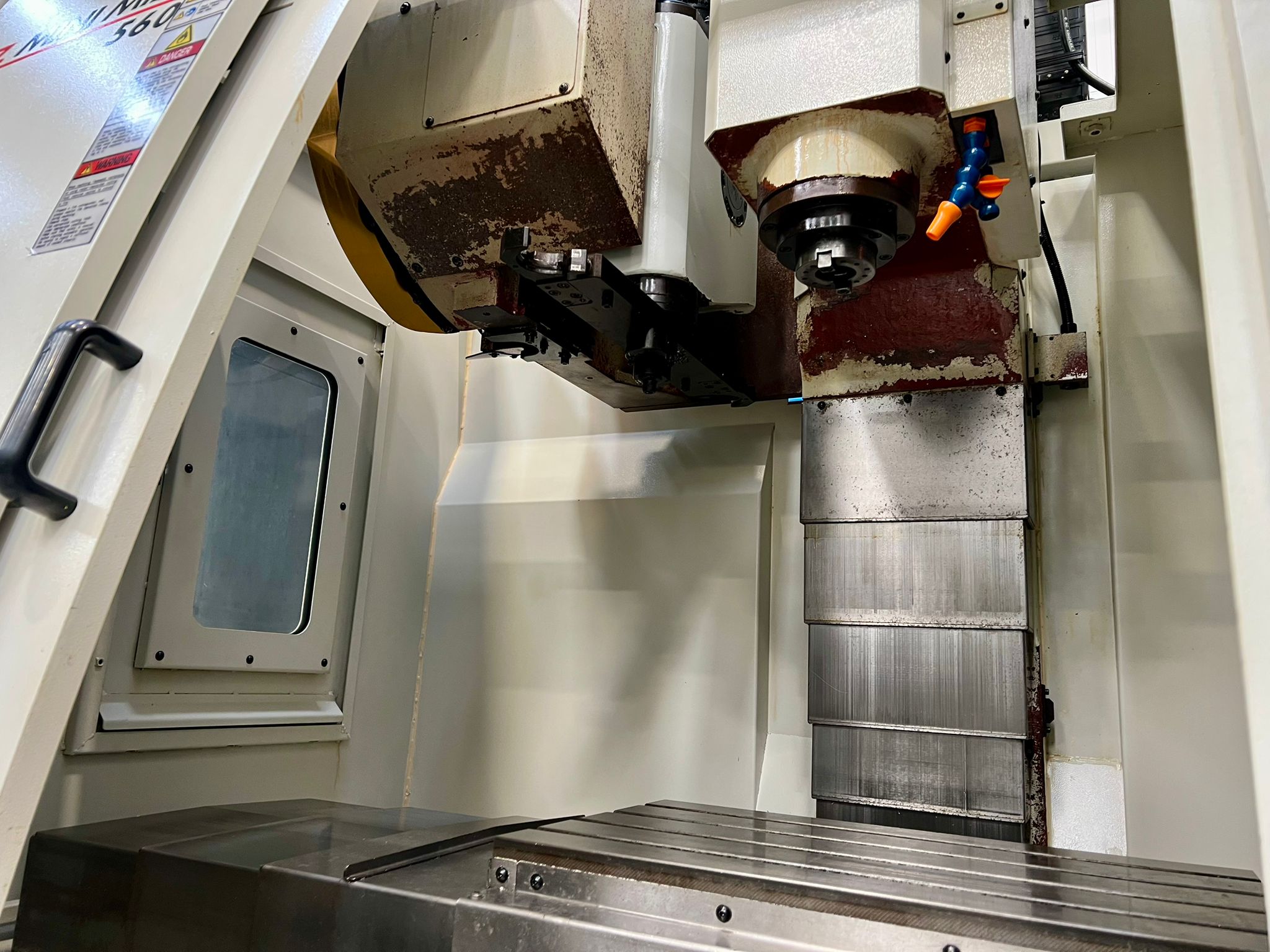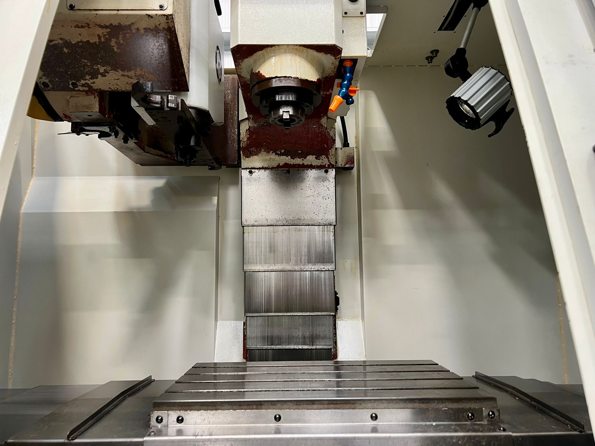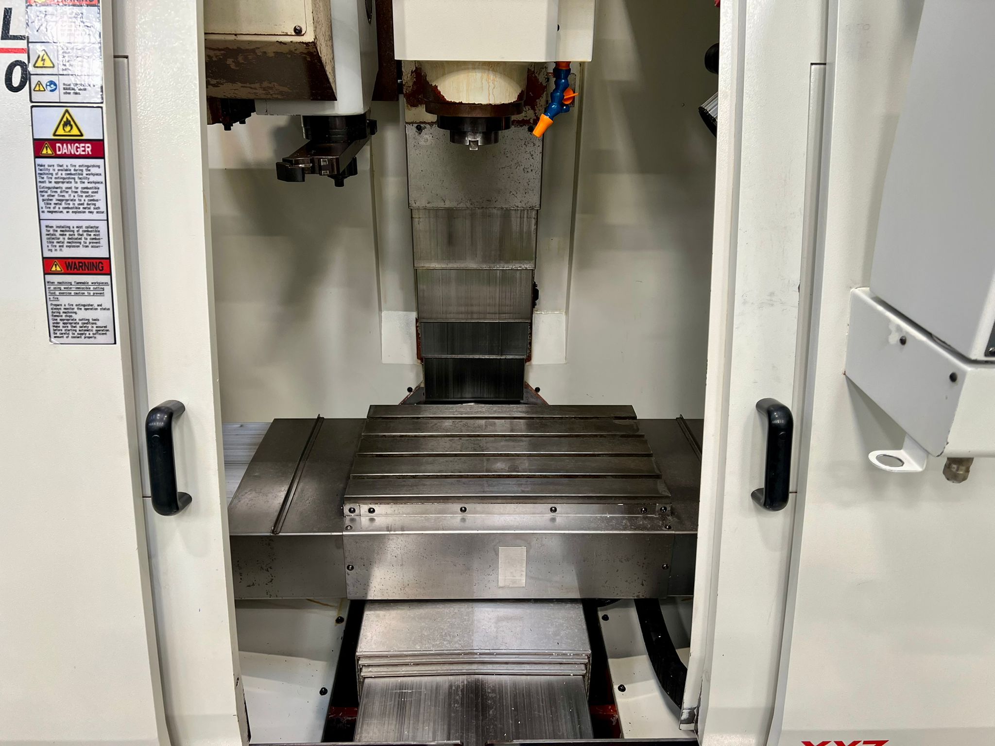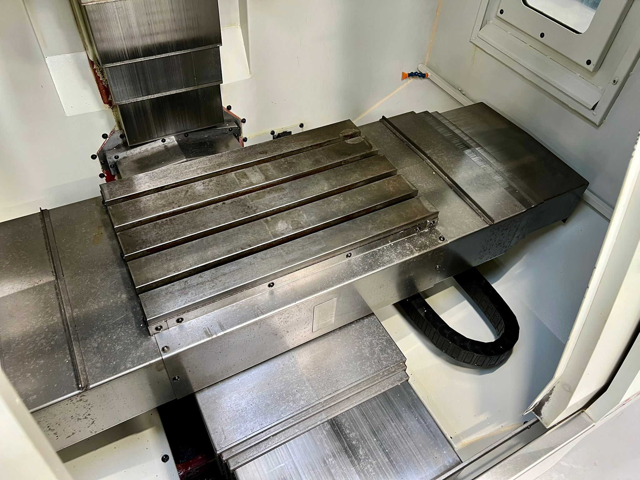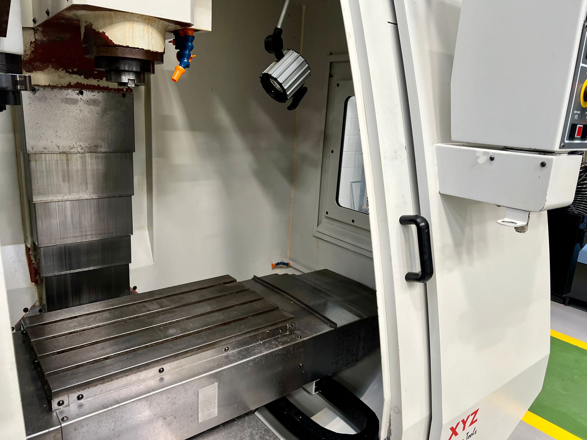 Table size 610 x 370mm. T slot size 16mm. Max loading capacity 320Kg. Travels X/Y/Z 560/400/500mm. Distance from spindle nose to working table surface 100 – 600mm. Distance from spindle centre to main column 440mm. Spindle taper BT40. Spindle Speed 60 – 8000RPM. Feed rate X/Y/Z 1 – 10000mm/min. Rapid traverse rate X/Y/Z 20000mm/min. Tool magazine capacity 16. Max tool weight 8Kg. Spindle drive motor 10HP. Coolant 1/2Hp. Complete with FX4002 Filtermist